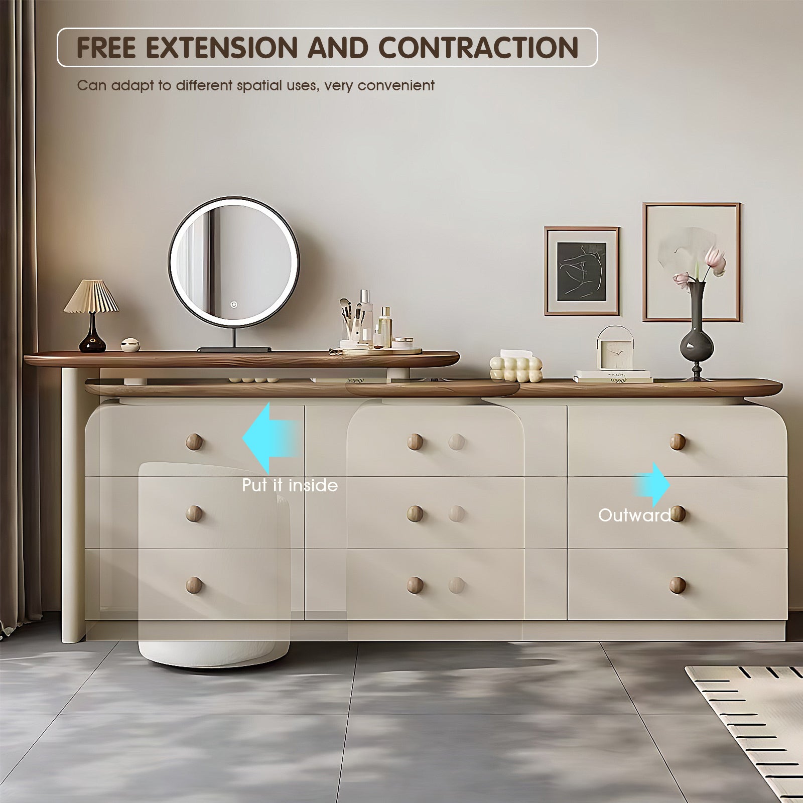Expandable and Rotating Design: Adapt to your evolving needs with the expandable and rotating features of this dressing table. The expandable tabletop offers additional space when needed, providing versatility to accommodate your beauty routine.