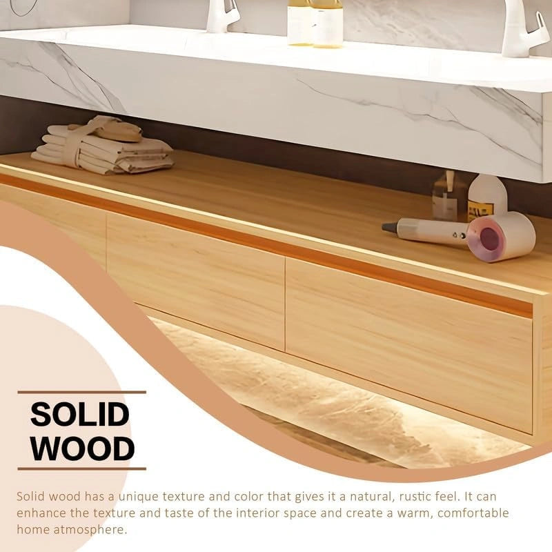 High-quality Countertop Ceramic Basin: Equipped with a textured countertop and an integrated ceramic basin, the surface is smooth and easy to clean. It is resistant to stains, scratches, and water damage, and is durable and waterproof. The seamless design also takes into account both aesthetics and practicality for daily use.