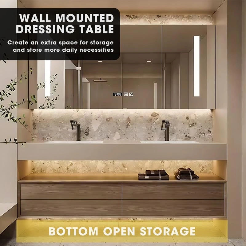 Dual-sink Design: The dual-sink vanity creates a convenient bathroom experience, allowing family members to use it simultaneously and eliminating the hassle of waiting in line. The family-oriented design caters to diverse needs, making the bathroom both practical and cozy, creating a harmonious home atmosphere.
