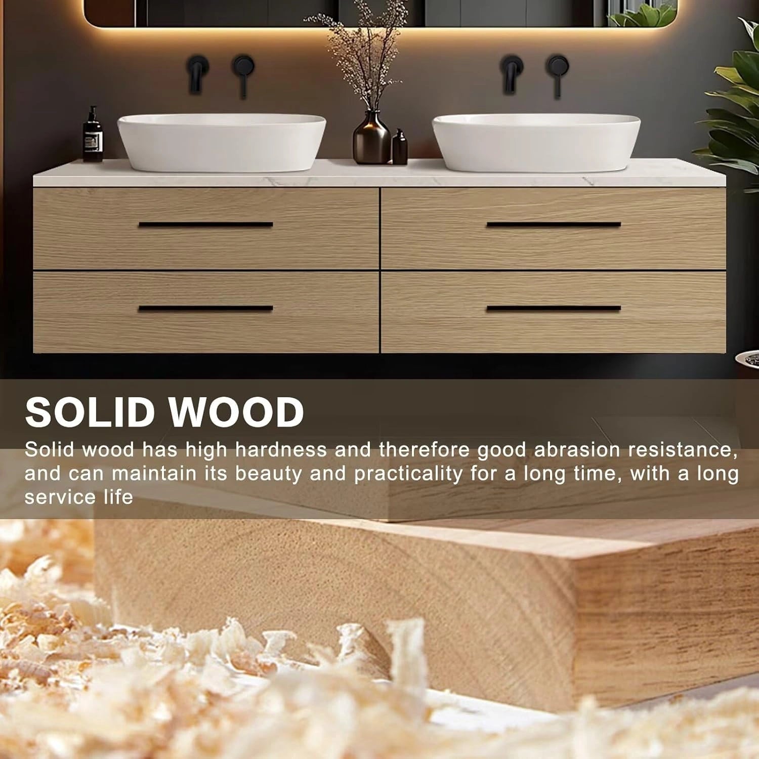 Modern Floating Design: Features a minimalist floating structure that allows height adjustment during installation, adding a sleek touch to bathroom with its elegant wood grain finish, which elevates the overall aesthetic