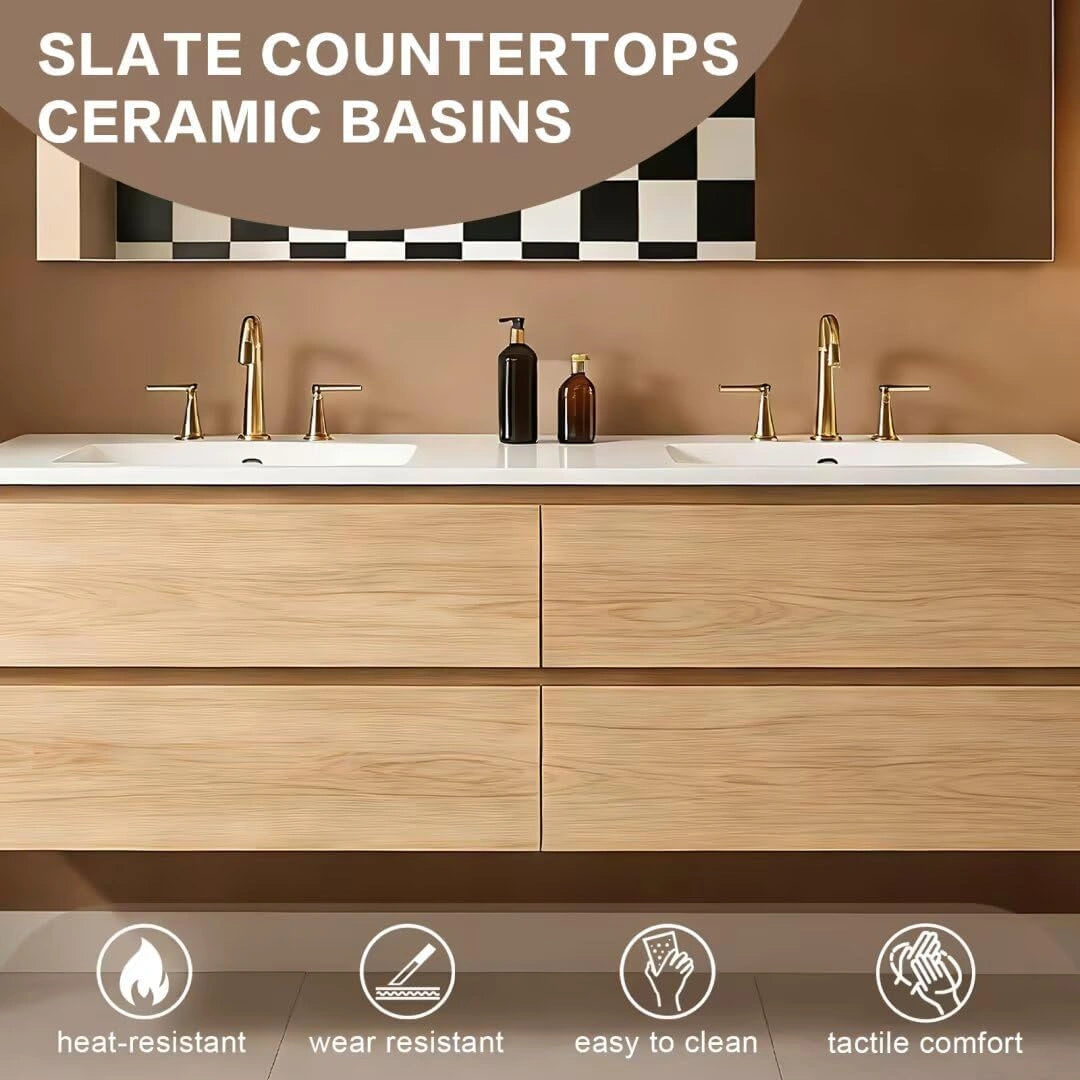 High Quality Materials: The cabinet is made of waterproof material with excellent water resistance, and the countertop uses wear-resistant slate. It remains stable and durable even after long-term use.