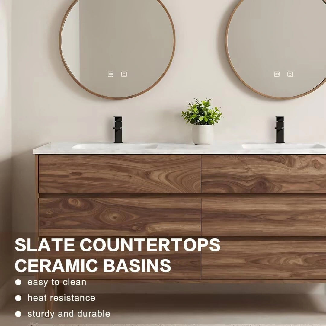 Double Sink: The dual-sink layout allows two people to use the bathroom simultaneously, streamlining daily hygiene routines. The sleek countertop provides ample workspace, accommodating multiple users and various tasks to meet your convenience needs.