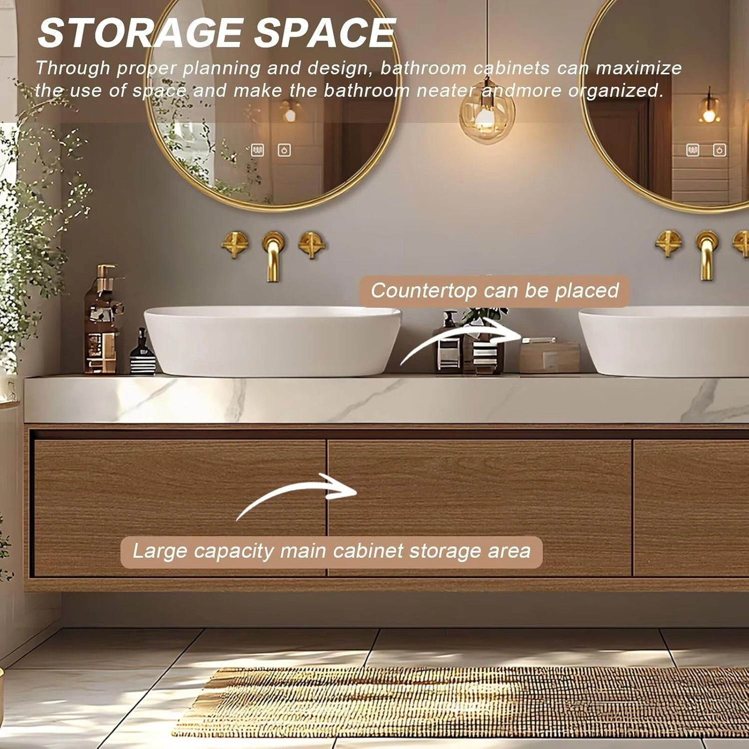 Closed Storage Space: Personal items can be hidden in enclosed storage areas to protect privacy and keep the bathroom counter tidy and clean, enhancing the overall aesthetic.
