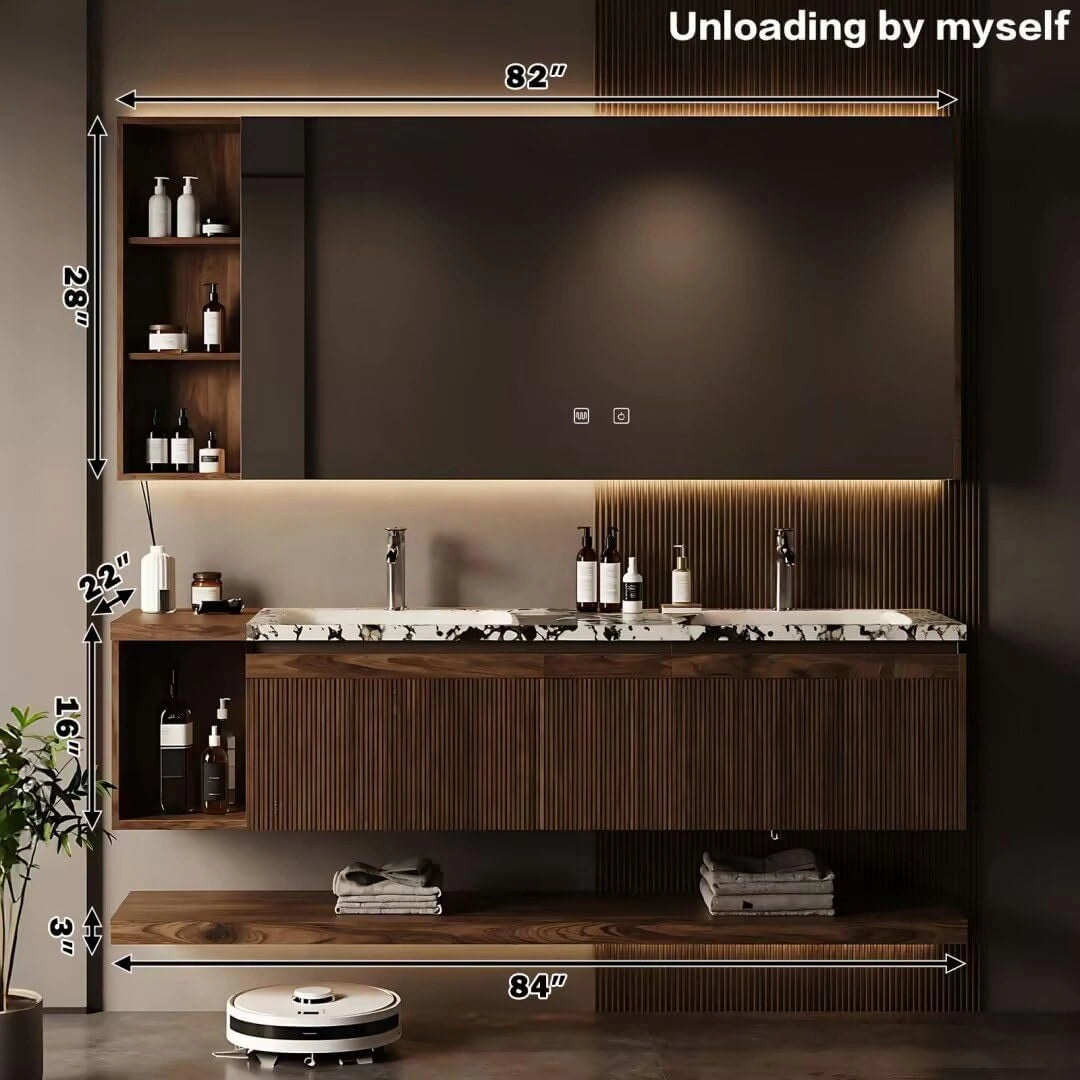 Quality Material: The cabinet is constructed from solid wood panels, with a durable stone slab countertop. The solid wood structure is stable and wear-resistant, maintaining its pristine appearance even with long-term daily use.