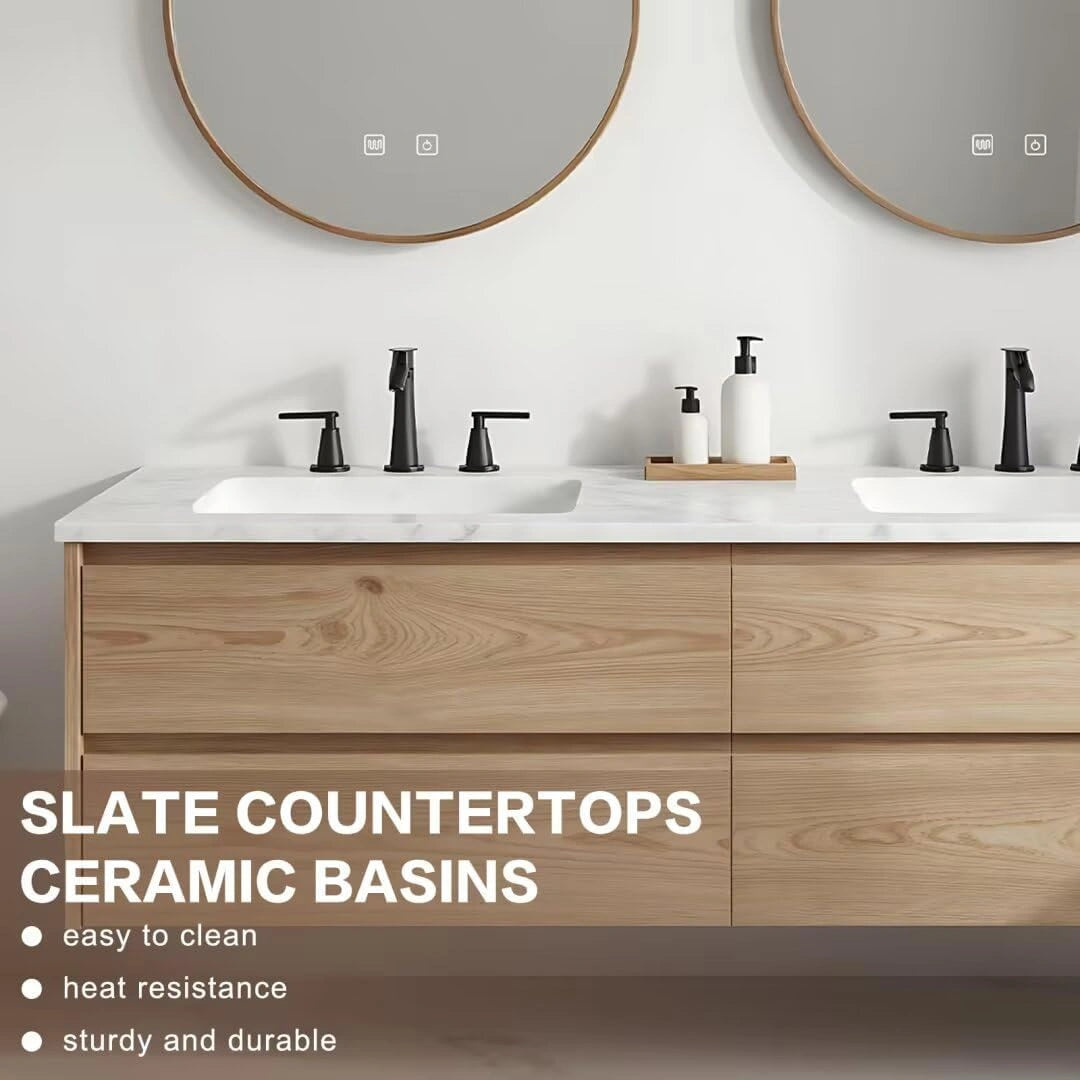 Ample Storage Space: The double-layer drawer design keeps countertops tidy, in line with the clean Nordic aesthetic. You can organize bathroom products by category to reduce visual clutter.