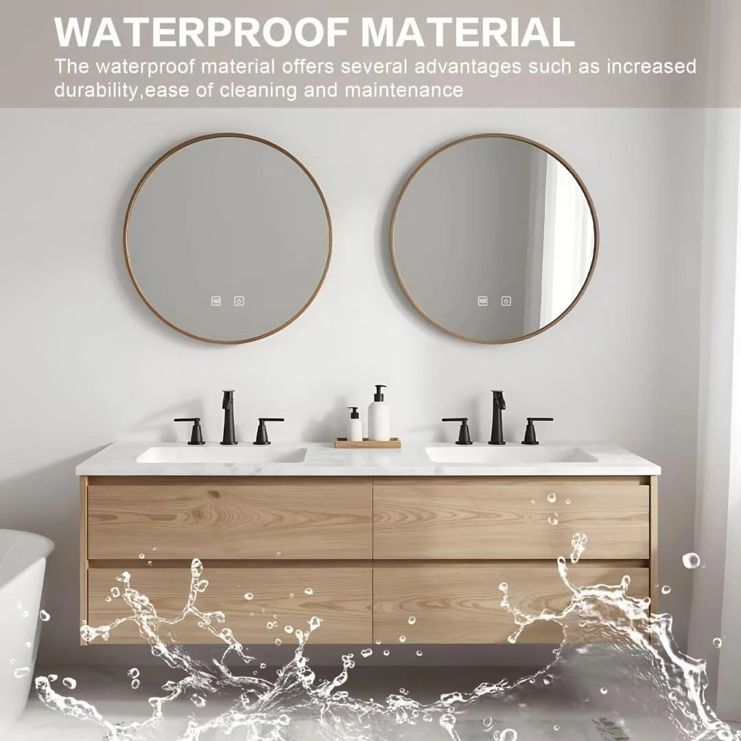 Round Smart Anti-Fog Mirror: The round wooden frame mirror perfectly complements the gentle Nordic style, with built-in anti-fog and lighting functions. The mirror stays clear after a hot shower, while soft ambient light creates a cozy atmosphere.