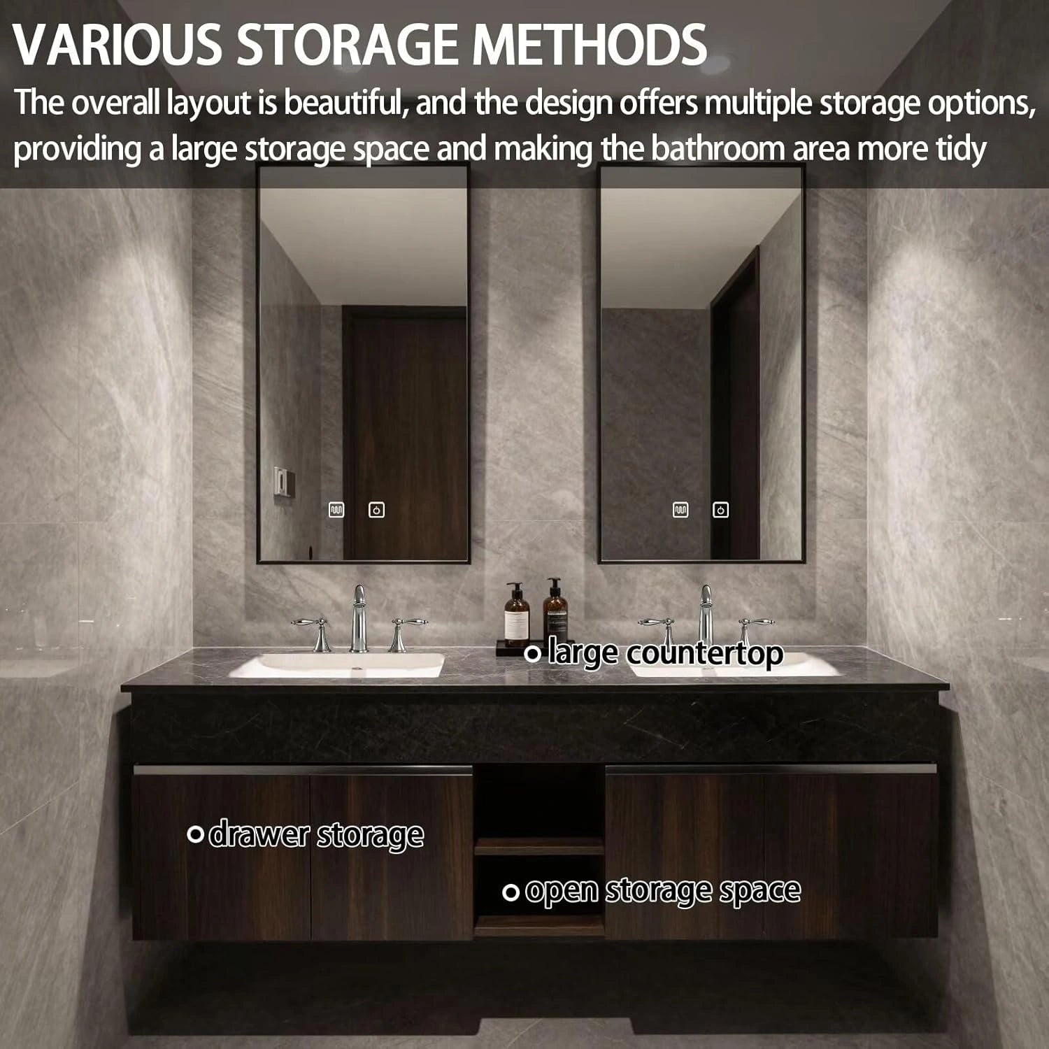 Open yet Tidy: The vanity includes a closed cabinet and a middle open shelf, allowing you to neatly organize towels and daily essentials for a clean, uncluttered appearance.