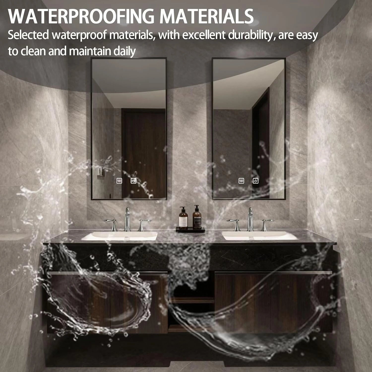 Dual LED Thermal Defogging Mirrors: Two tall rectangular mirrors feature smart LED lighting and thermal defogging functions, ensuring a clear reflection even in highly humid environments during your grooming routine.