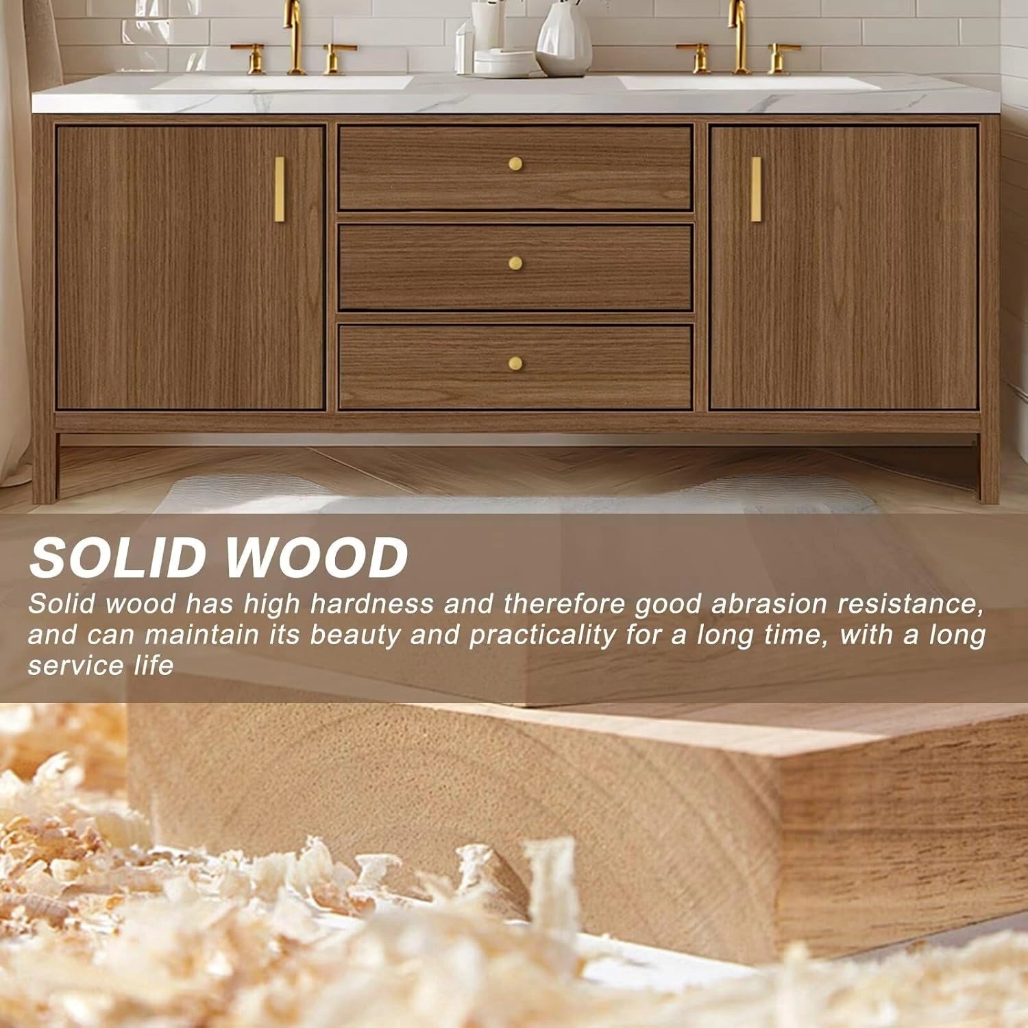 Double Sink for Dual Convenience: The double sink design is perfectly suited for modern family life. Whether it’s a busy morning rush or a relaxed evening routine, you and your family can use it simultaneously, greatly boosting your daily grooming efficiency.
