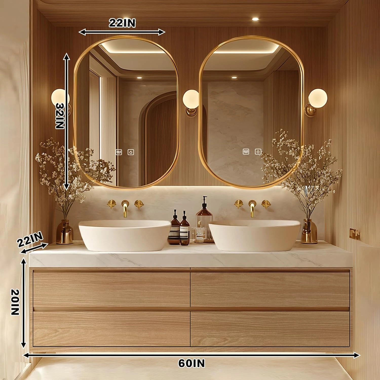 LED Smart Defog Mirror: When the bathroom is foggy, it quickly activates the defog function, and the mirror surface becomes clear instantly, without the haze blocking your vision;bright LED light simulates natural light