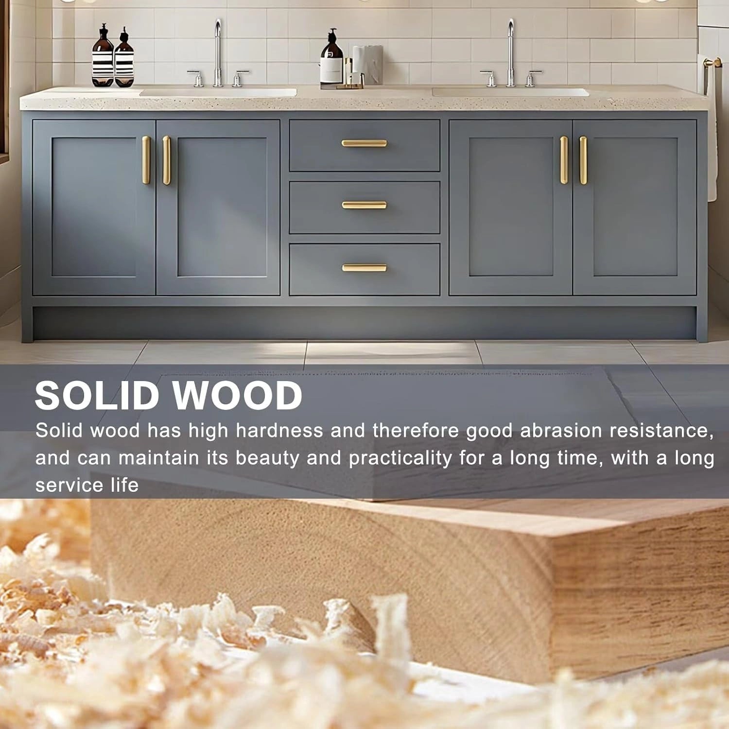 Solid Wood: Solid wood's high hardness ensures the cabinet maintains its aesthetic and practicality over time, while its inherent texture adds a natural, upscale ambiance to the bathroom