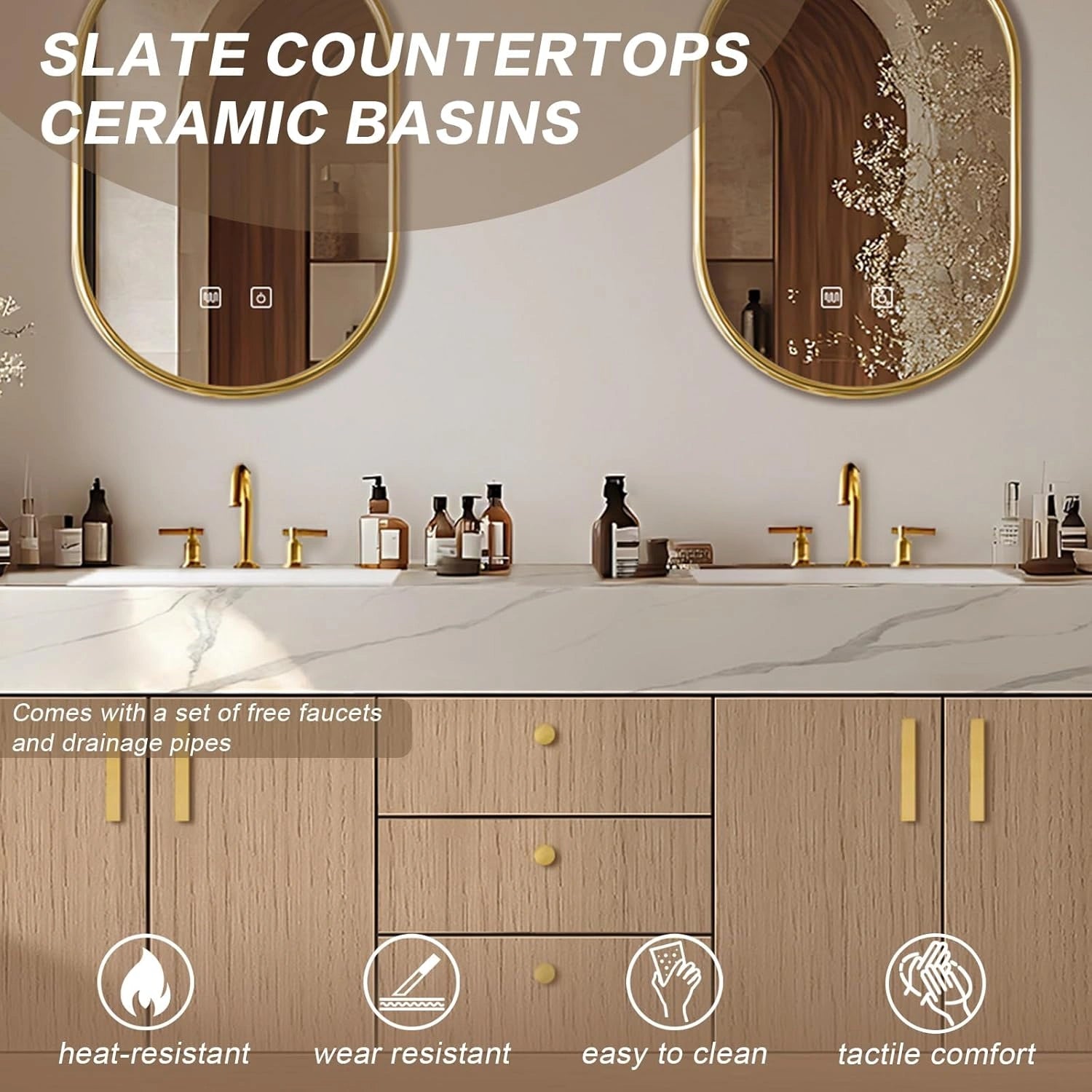 One-Piece Double Sinks Design: It allows two people to wash at the same time, helping users to complete daily cleaning more efficiently. With the integrated one-piece design, bathroom space is fully utilized.