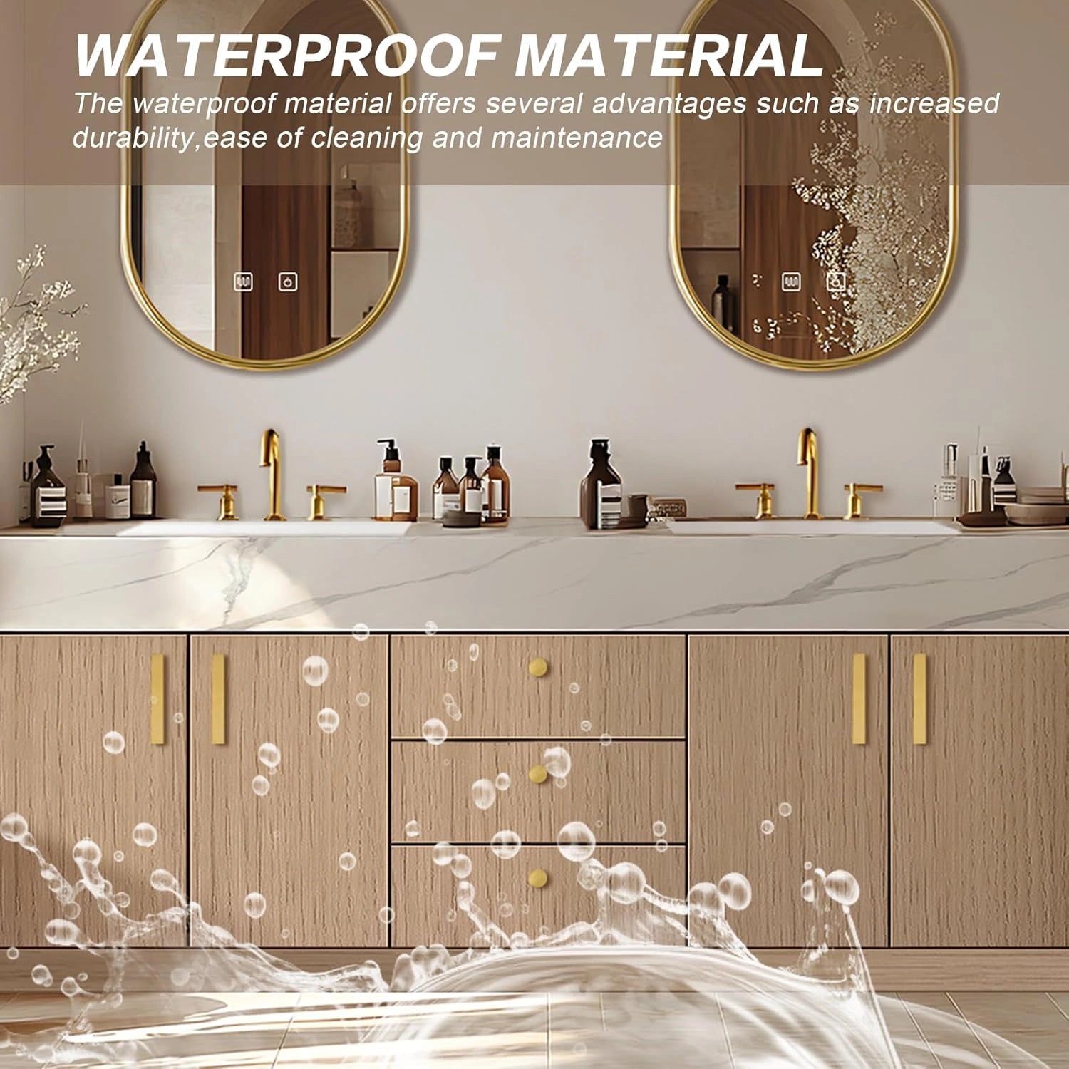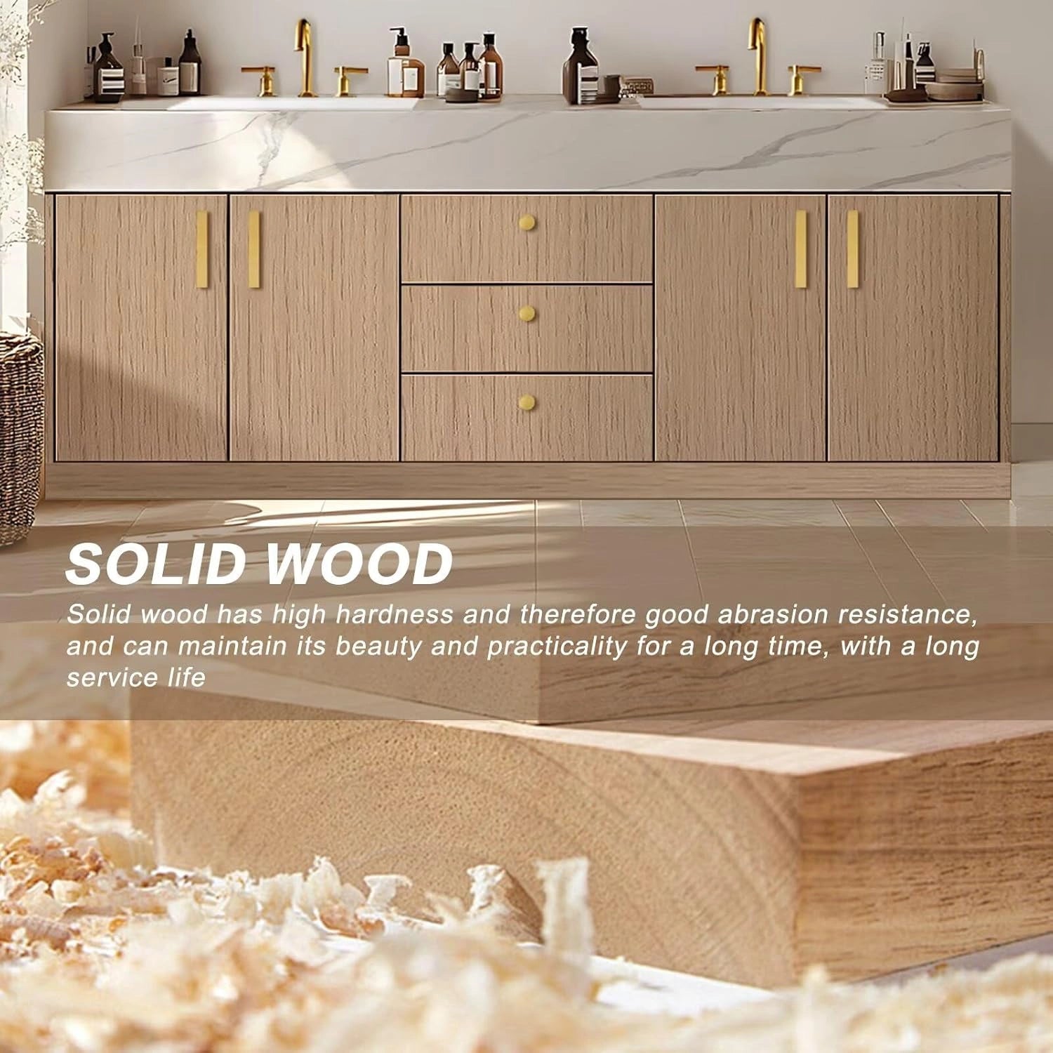 Simple Light Luxury Unique Style: Light wood color cabinet with long gold bar handles, exquisite and noble. White rock slab with smooth texture creates a clean and elegant atmosphere. The overall matching is delicate but not tacky.