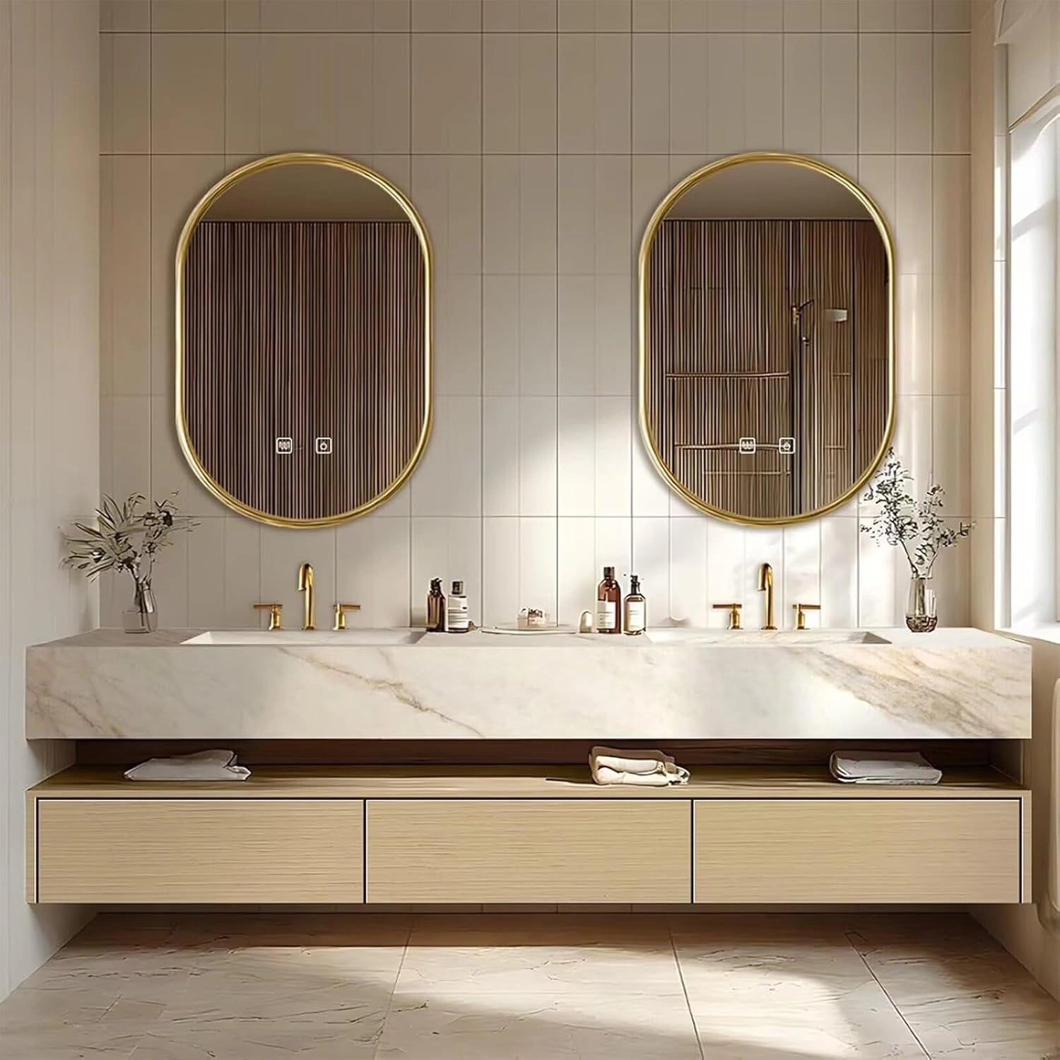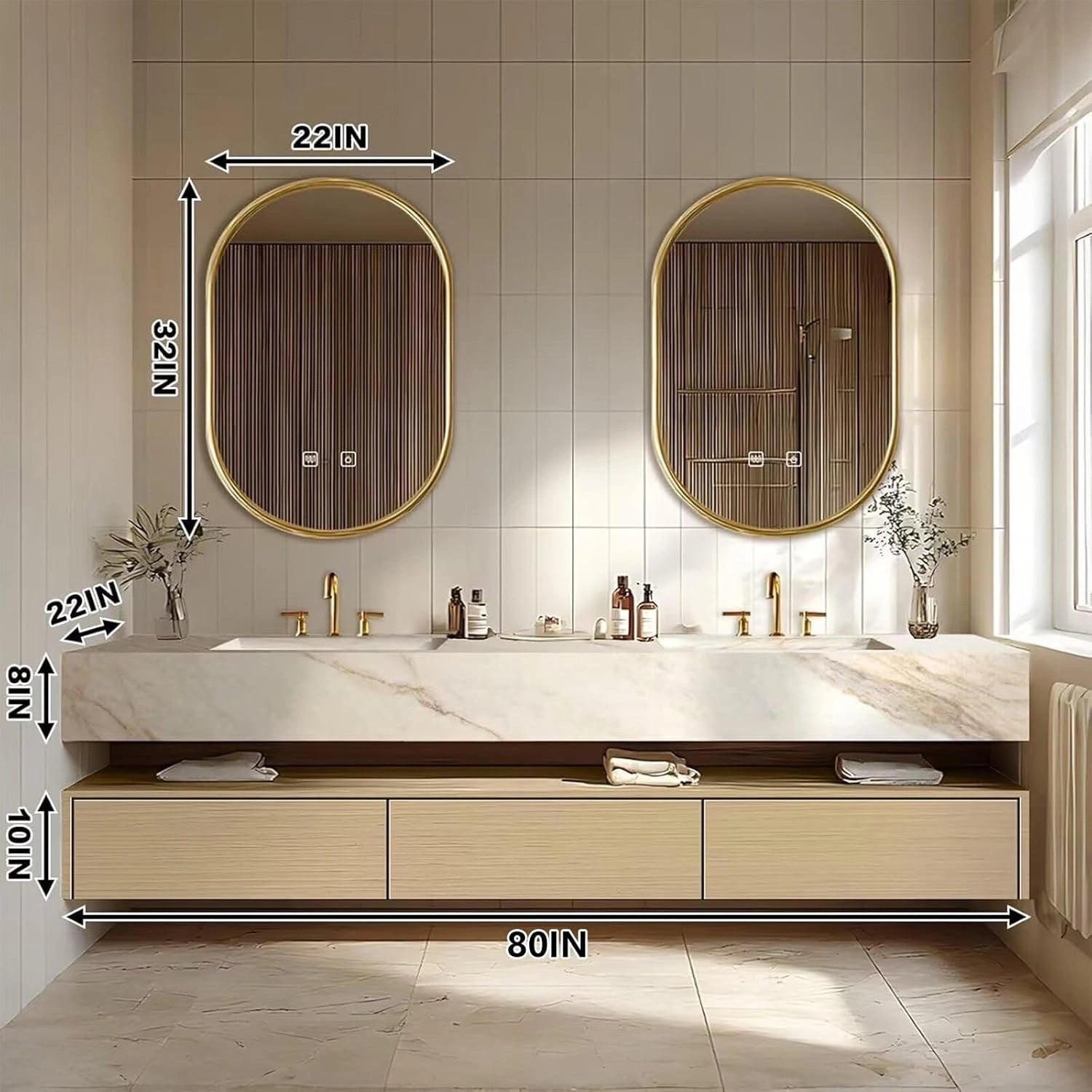 LED Smart Defog Mirror: It senses and automatically turns on the defog mode when the bathroom gets steamy, instantly clear the mirror surface without haze blocking your vision;bright LED light replicates natural light