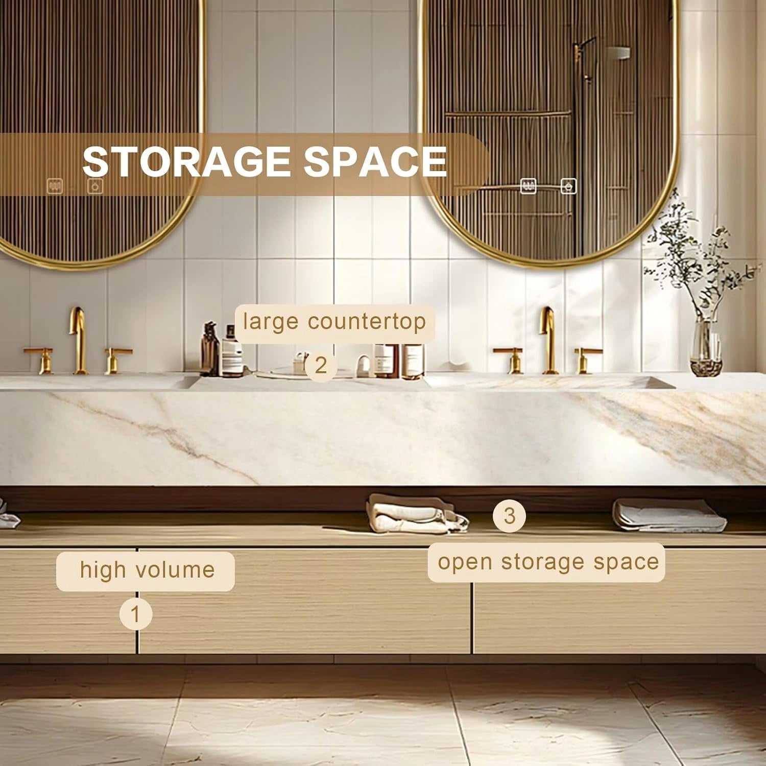 Double Sinks: Its large size is enough for two people to use simultaneously;Early morning washing time is never rushed,For efficiency and convenience