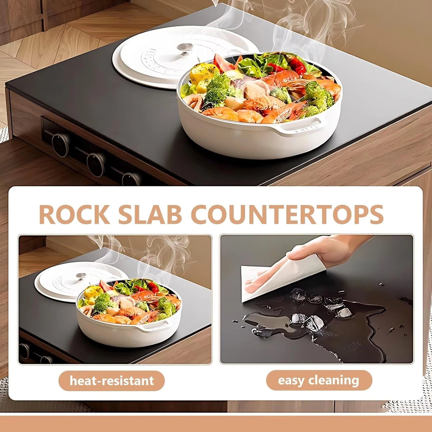 Durable & Stylish Premium Materials: The rock slab tabletop is exceptionally hard-wearing, featuring a smooth, stain-resistant surface that's a breeze to clean. Meanwhile, the solid wood frame—used for both the tabletop support and legs—delivers outstanding stability and reliable load-bearing performance.