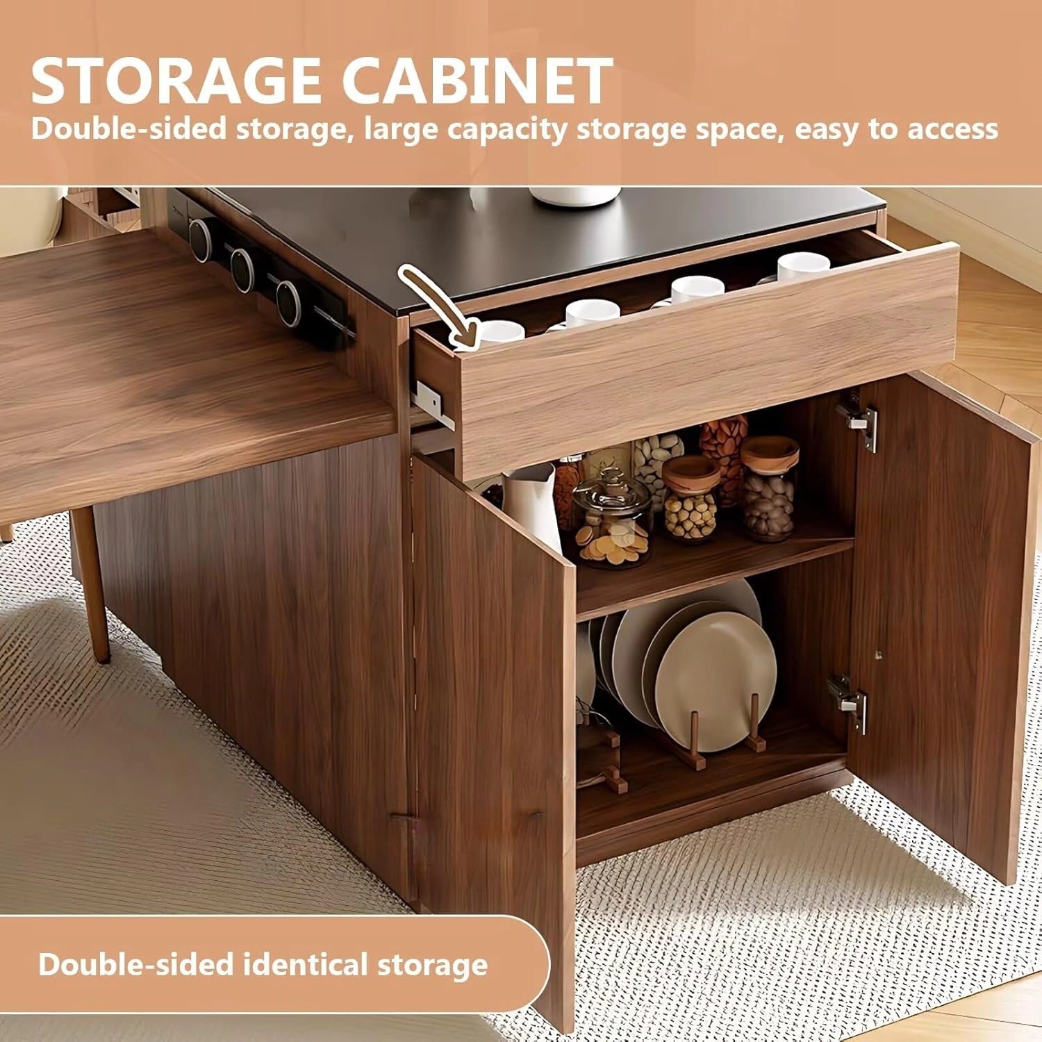 Extendable All-in-One Dining Table & Island: Boasting a unique 3-in-1 design that integrates a dining table, kitchen island, and workstation, this piece allows you to adjust the table size according to the number of diners. The flexible resizing function is incredibly user-friendly, making it perfect for both daily family meals and lively dinner parties.