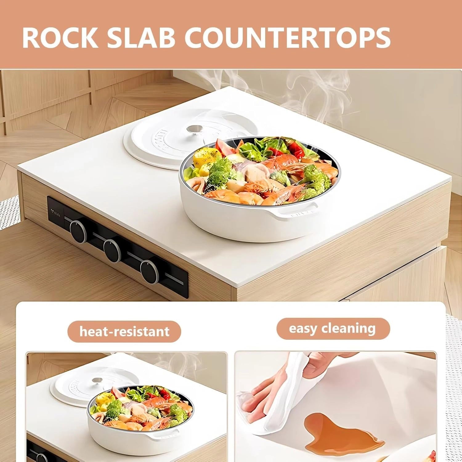 Exquisite and Long-lasting Material: The tabletop is made of rock slab, which is durable, smooth and easy to clean. Solid wood is used as the bearing material, making the tabletop and table legs stable and reliable.