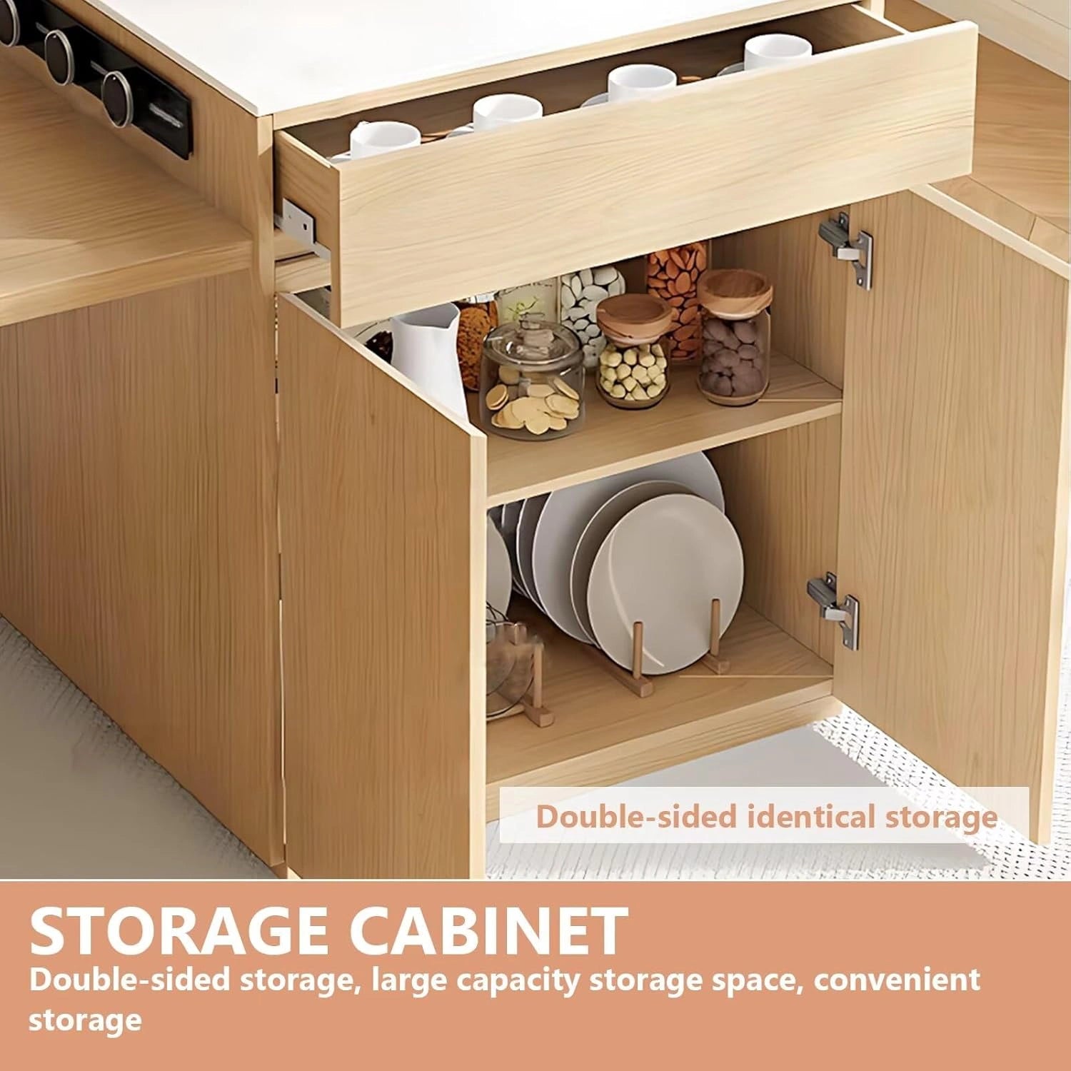 Retractable Dining Table: This product features an all-in-one design of island and dining table. The table size can be flexibly adjusted according to the number of diners, allowing you to easily handle daily meals and parties without any trouble.
