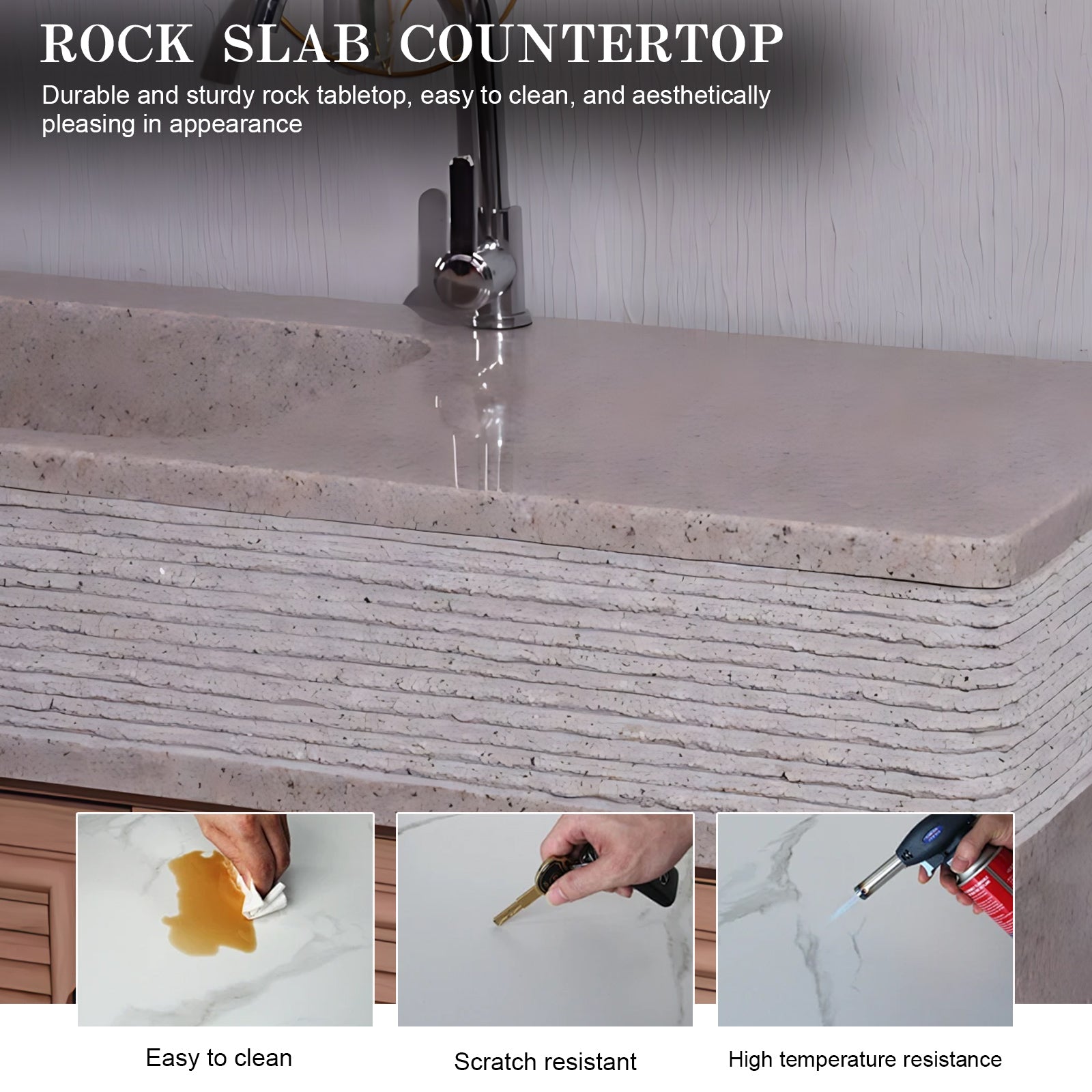 Crafted to be Elegant and Authentic: Our cabinet doors exude modern charm, and the carefully crafted real wood stripes show the beauty of nature. The embossed striped wave design reflects our commitment to creating furniture that blends harmoniously with modern living spaces, perfectly combining style and function. Paired with a sink made of high-quality slate material, the whole exudes unparalleled sophistication and beauty, enhancing the overall beauty of your space.