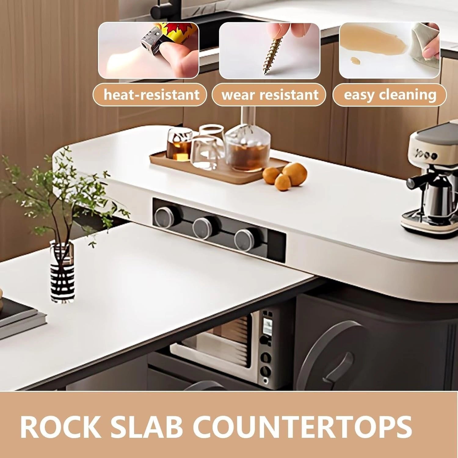 Sturdy & Durable Materials: The tabletop and countertop are crafted from premium rock slabs—exceptionally hard and highly resistant to deformation. The cabinet body is made of solid wood, delivering reliable load-bearing capacity for long-term use.