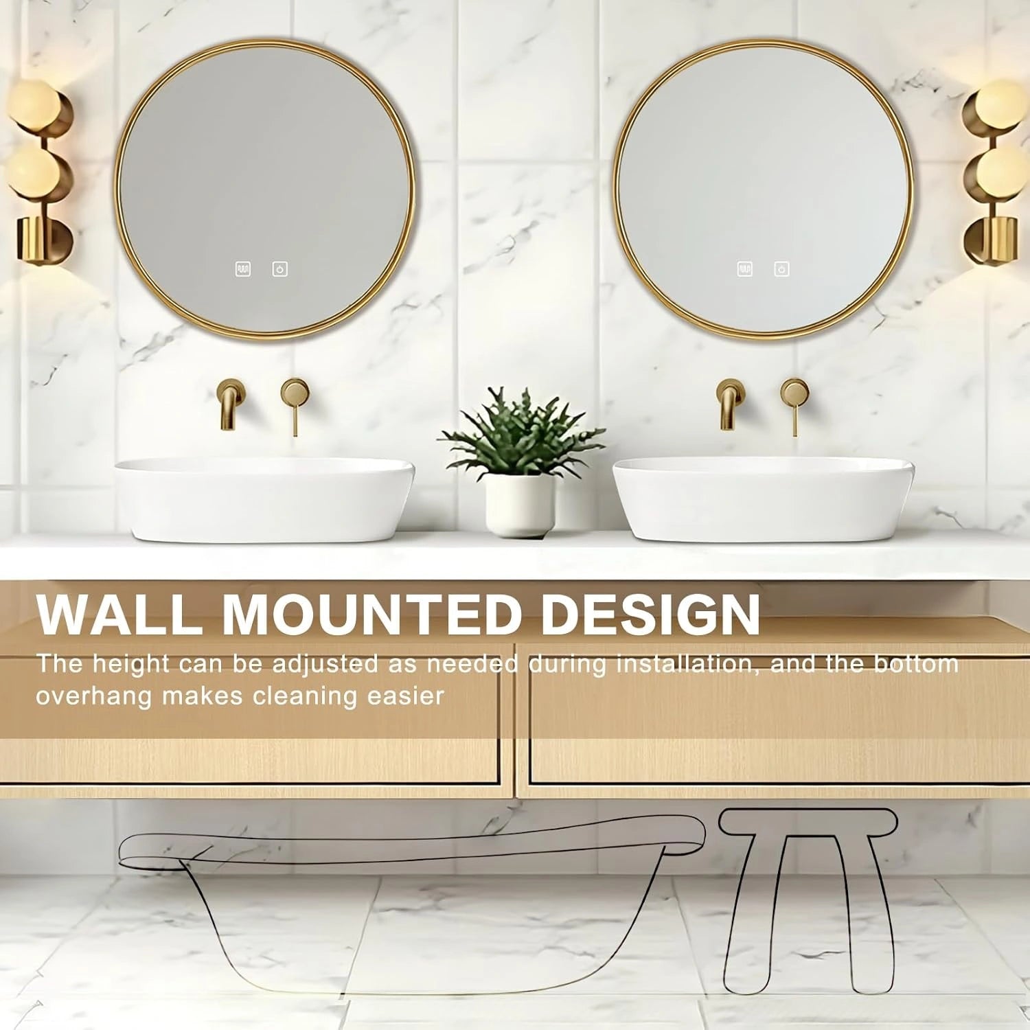 LED Smart Defog Mirror: As soon as the bathroom fills with steam, the mirror instantly activates its defogging function, clearing the surface at once with no fog to obstruct your vision. Its bright LED lighting mimics the soft glow of natural sunlight for a comfortable illumination experience.