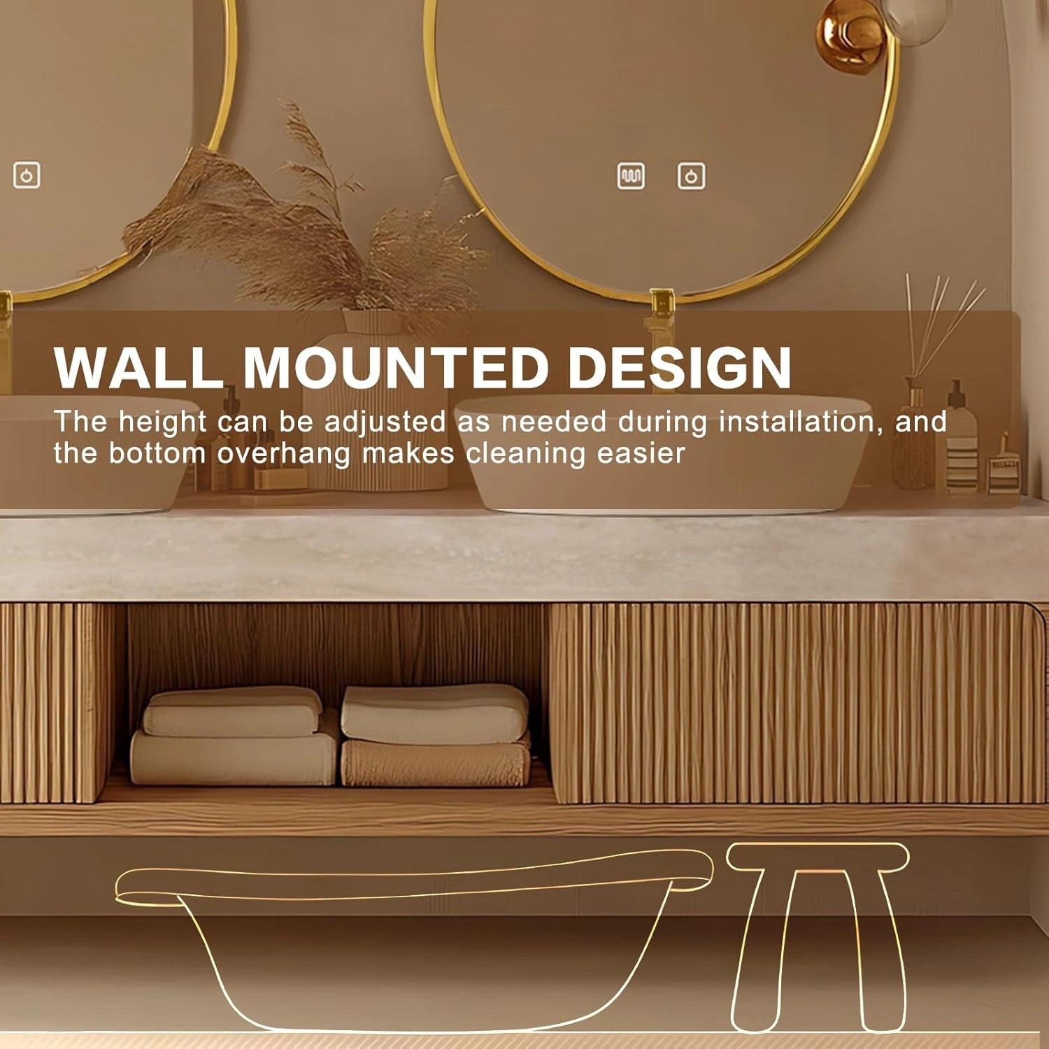 LED Smart Defog Mirror: When the bathroom is foggy, it quickly activates the defog function, and the mirror surface becomes clear instantly, without the haze blocking your vision;bright LED light simulates natural light