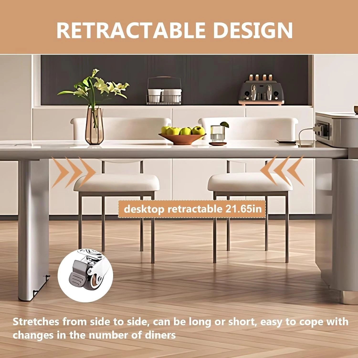 Retractable Dining Table: This model integrates a kitchen island and dining table in one design. The table can be flexibly extended to accommodate any number of guests, suitable for both daily meals and parties.