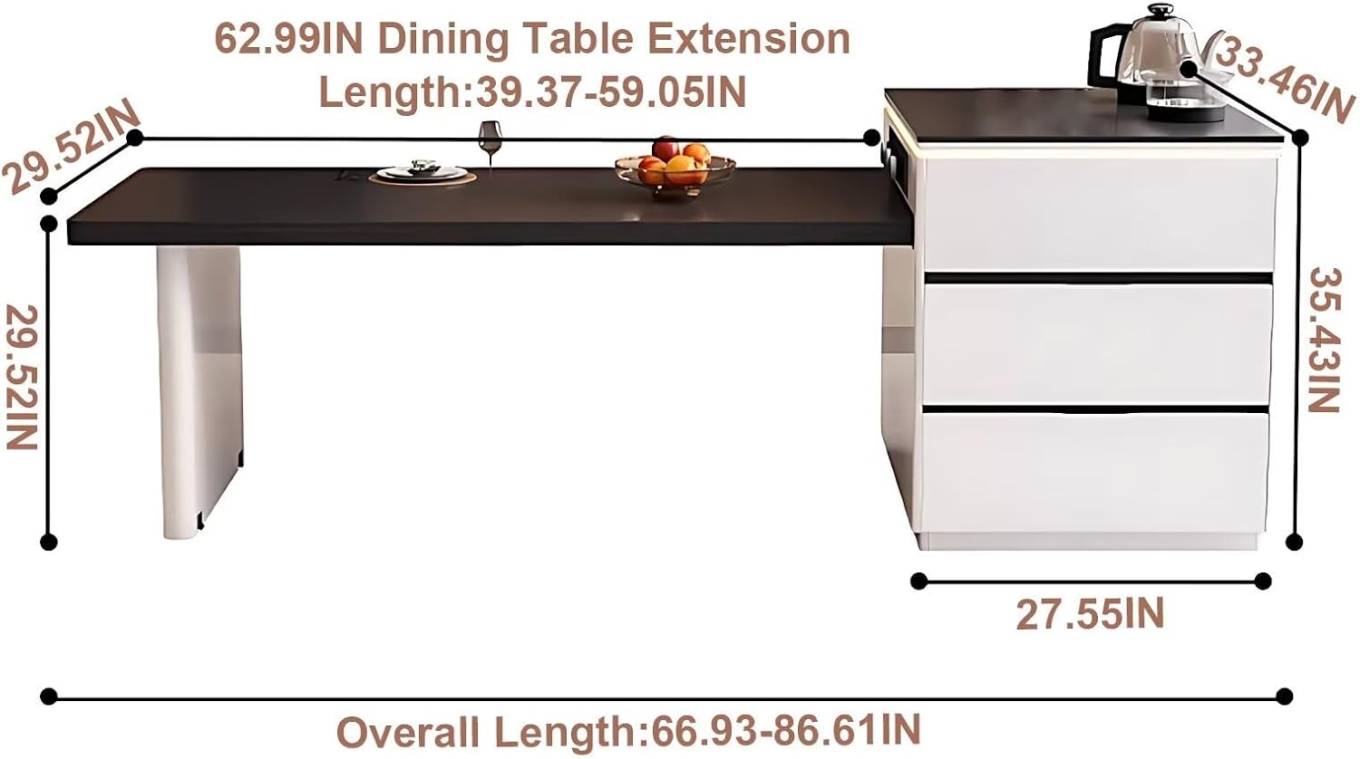 Retractable Dining Table: This design integrates an extendable dining table with a kitchen island. The table size can be adjusted to fit the number of diners, making it ideal for daily meals or gatherings.