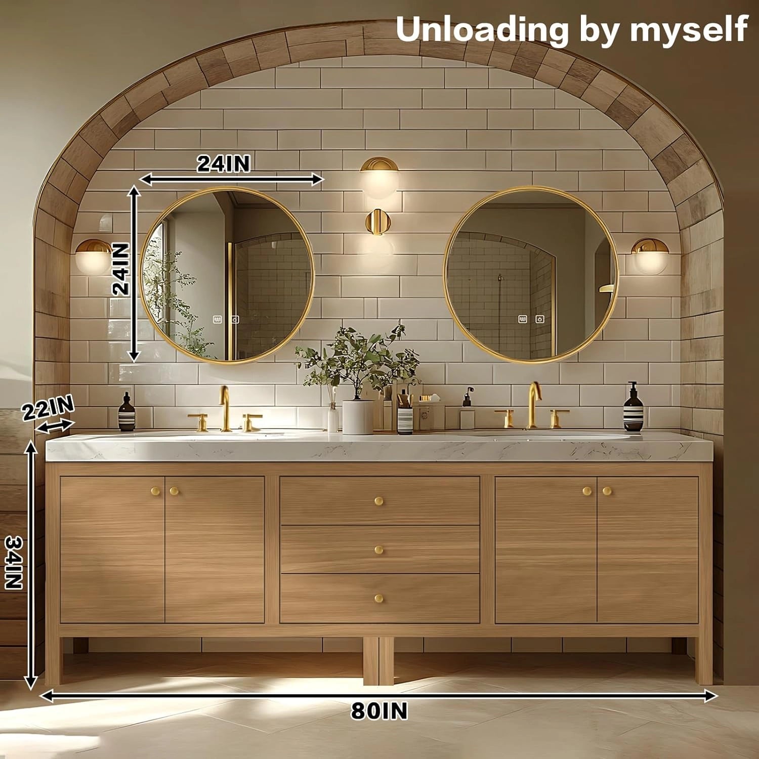 Exquisite Accessories: The hidden silent guide rail opens and closes smoothly and silently to protect the cabinet; the exquisite details of the golden small handle reflect the quality of the bathroom dresser and show the retro style