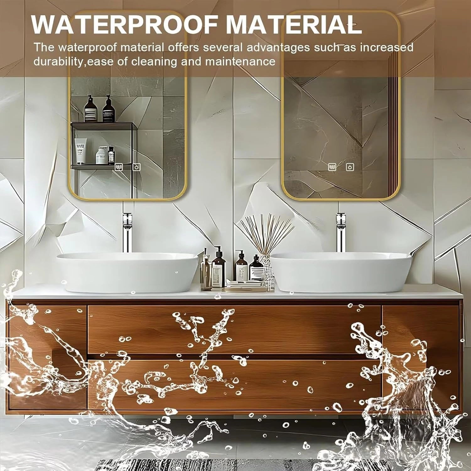 LED Smart Defogging Mirror: When the bathroom fills with steam, the mirror instantly activates its defogging function, restoring a clear reflection in seconds—no fog to obstruct your view. The bright LED lights simulate natural daylight, providing ideal illumination for daily grooming.