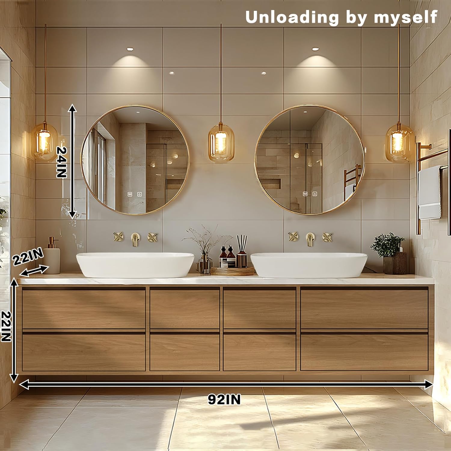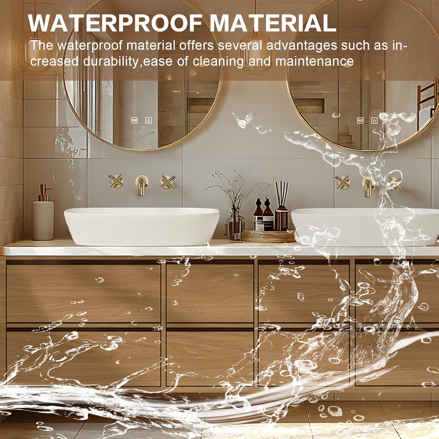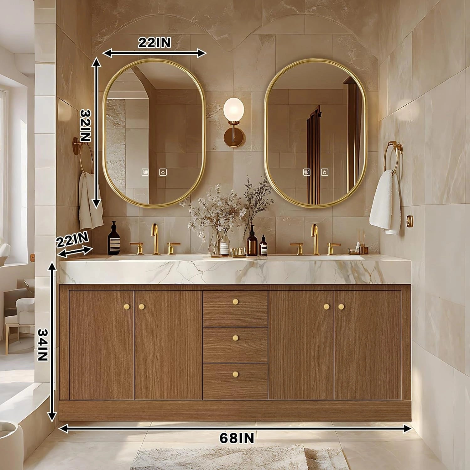 LED Smart Defog Mirror: Above the cabinet are two large mirrors with smart touch buttons. You can turn on the bright LED lights with just one touch. It can also easily turn on the defogging function of the mirrors to make your home life more convenient