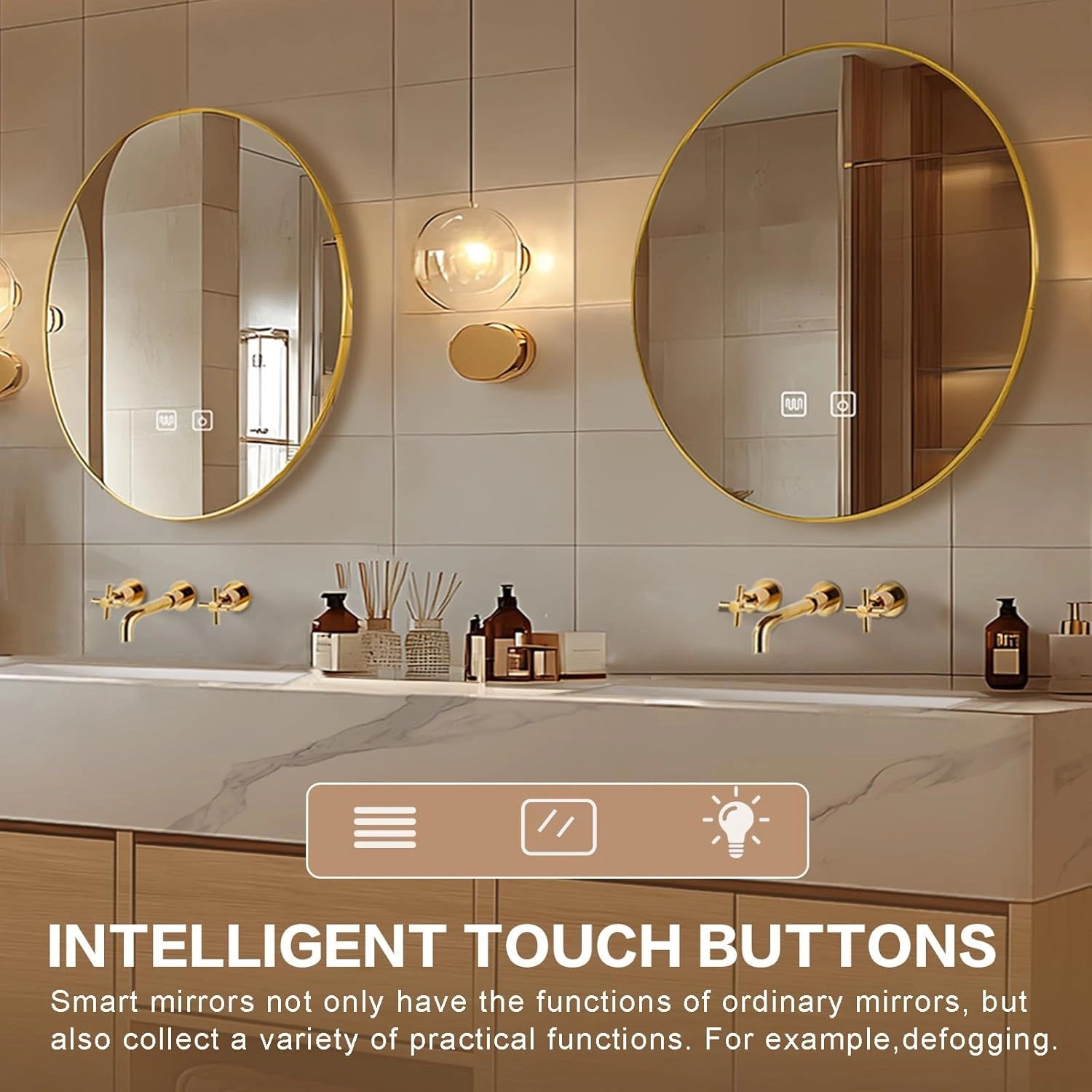 LED Smart Defog Mirror: When the bathroom is foggy, it quickly activates the defog function, and the mirror surface becomes clear instantly, without the haze blocking your vision;bright LED light simulates natural light