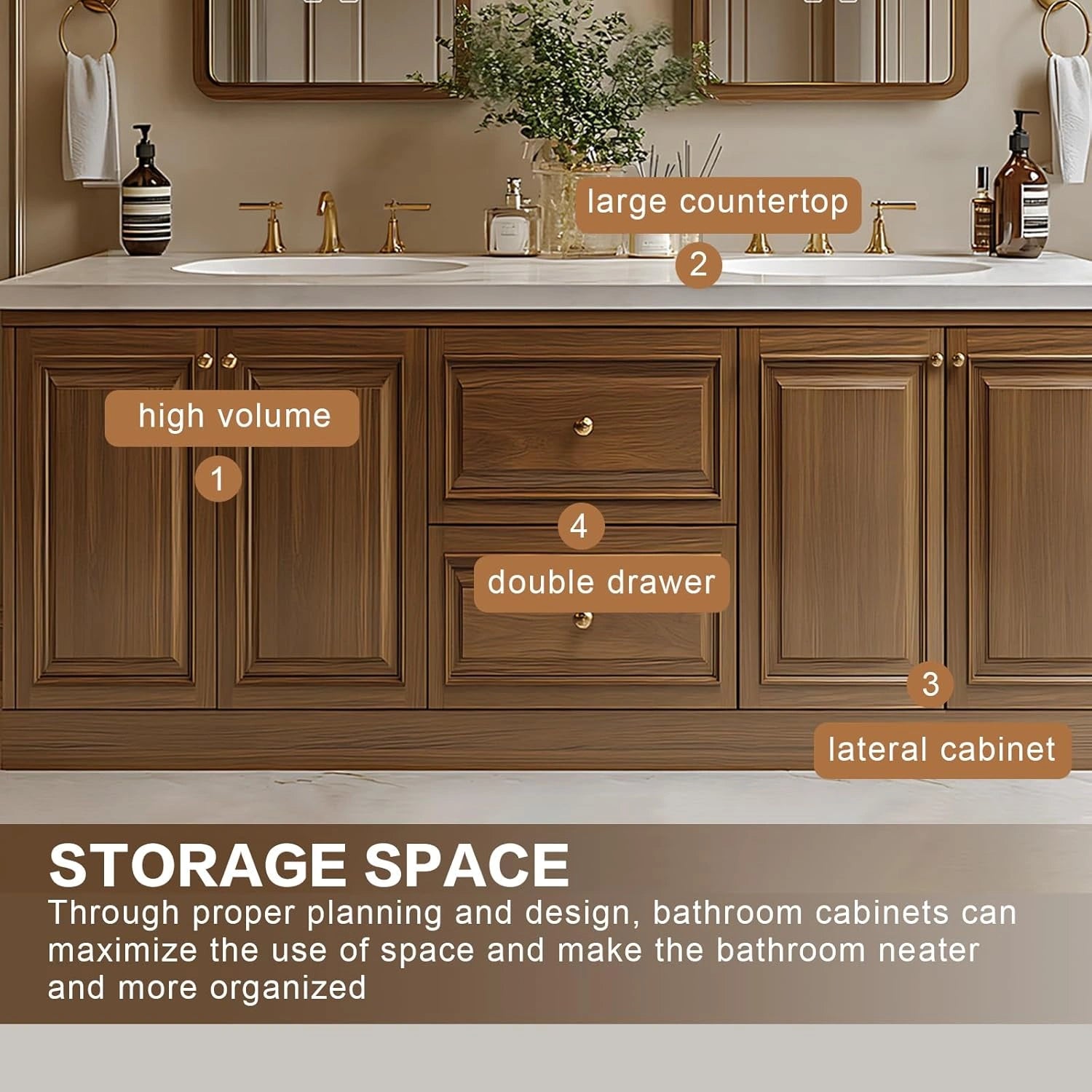 Double Sinks: Its spacious layout can meet the needs of multiple people using it at the same time;it is efficient and convenient, making the early morning washing time no longer rushed