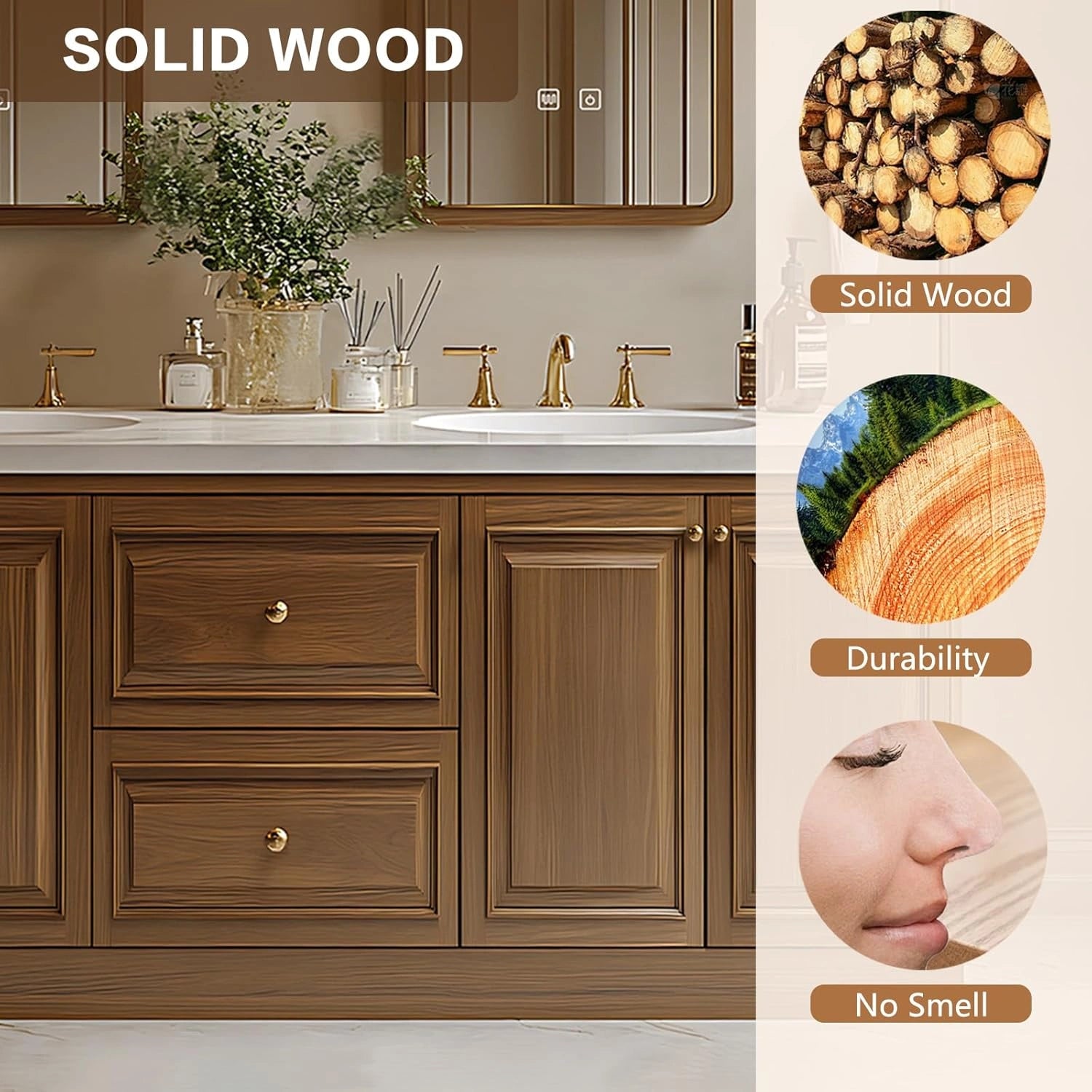 Exquisite Accessories: the hidden silent guide rail opens and closes smoothly and silently to protect the cabinet; the exquisite details of the golden small round handle reflect the quality of the bathroom dresser and show the exquisite style
