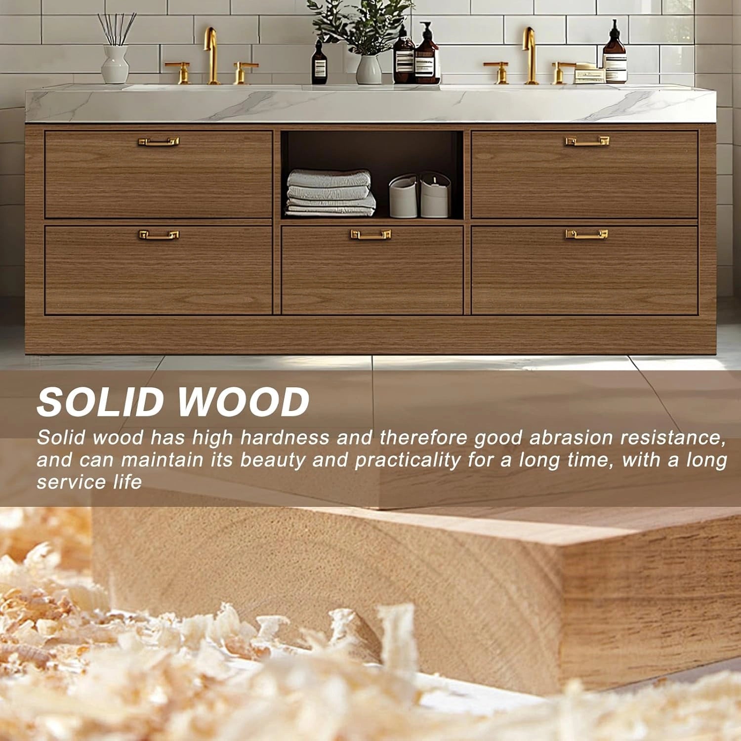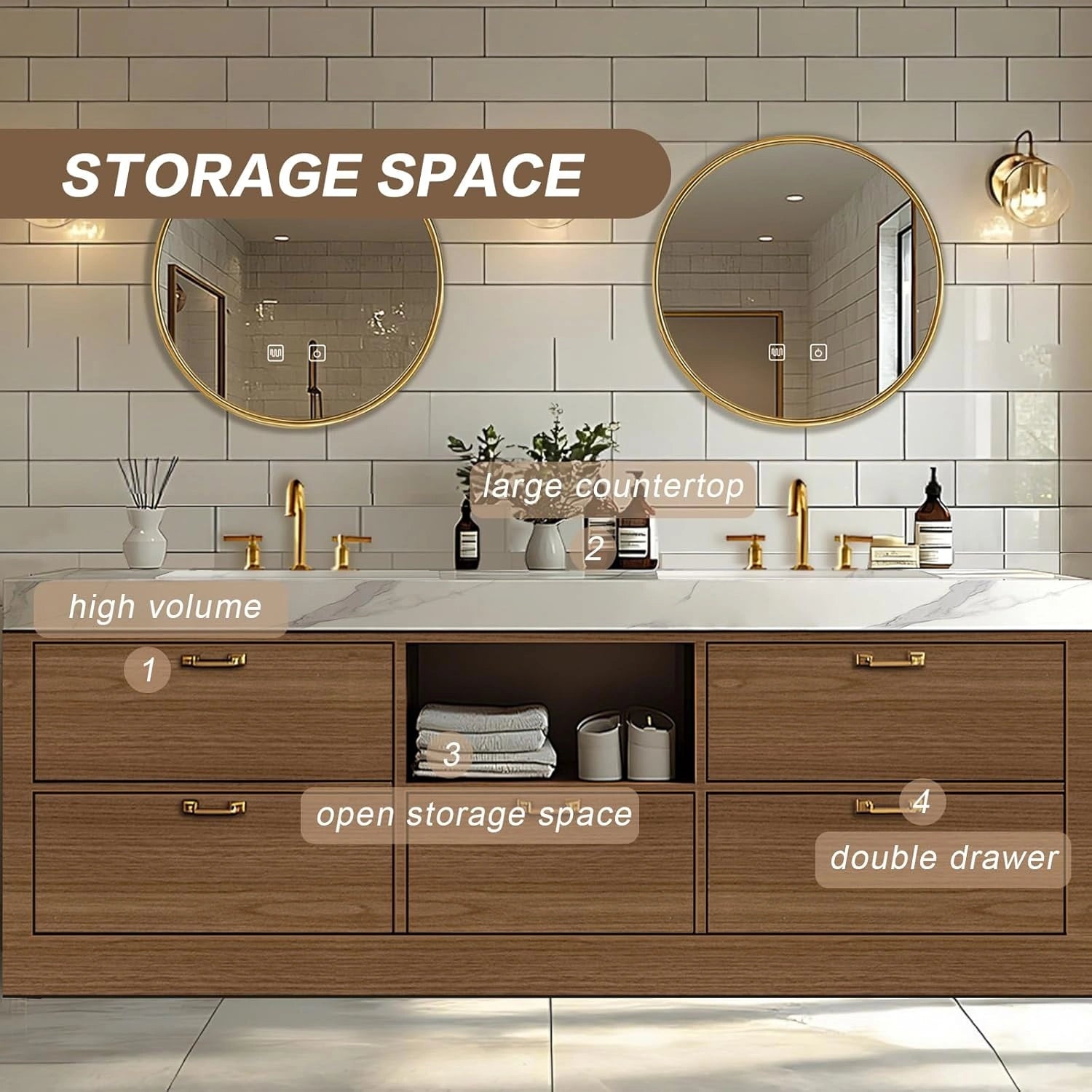 Rock Slab Integrated Sinks: The countertop and basins are integrally formed, giving the unit a sleek, unified look. The generously sized countertop provides ample space for your daily essentials within easy reach.