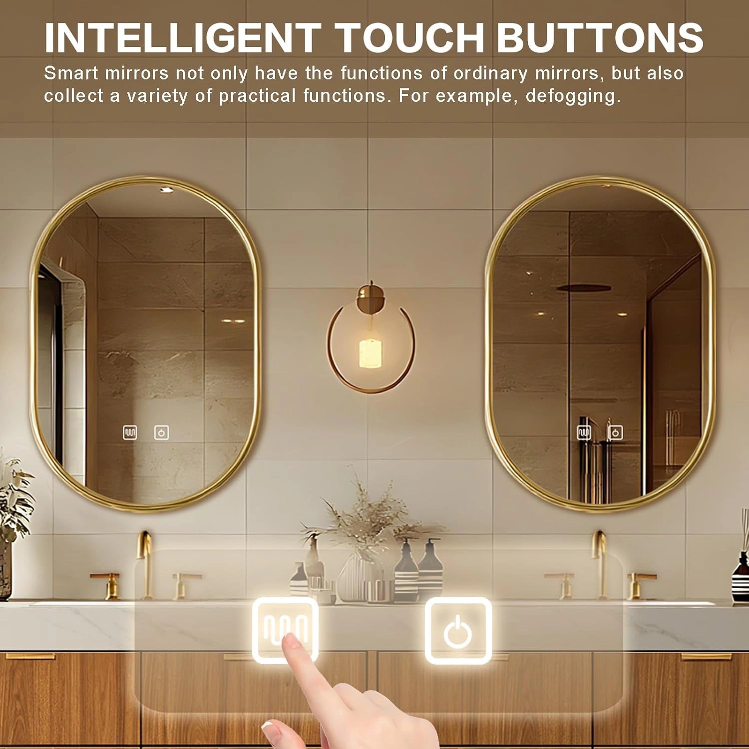 LED Smart Defog Mirror: When the bathroom is foggy, it quickly activates the defog function, and the mirror surface becomes clear instantly, without the haze blocking your vision;bright LED light simulates natural light
