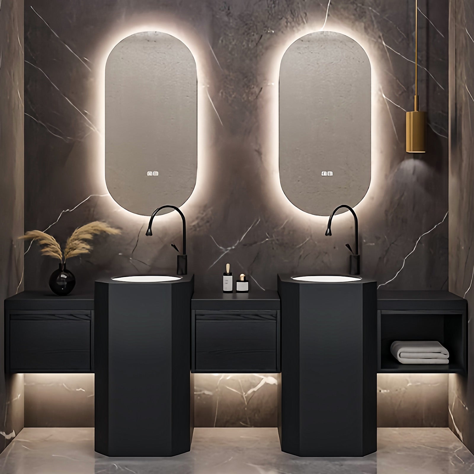 Smart Mirror Technology: Simplify your morning routine with our smart mirror's one-touch defog function, ensuring clear reflections for the perfect start to your day. Clean with ease and maintain its pristine appearance with ease, while built-in ambient lighting bathes your bathroom in soft warmth, adding an inviting touch to your space. Our smart mirror enhances your beauty care lighting and takes your grooming experience to the next level.