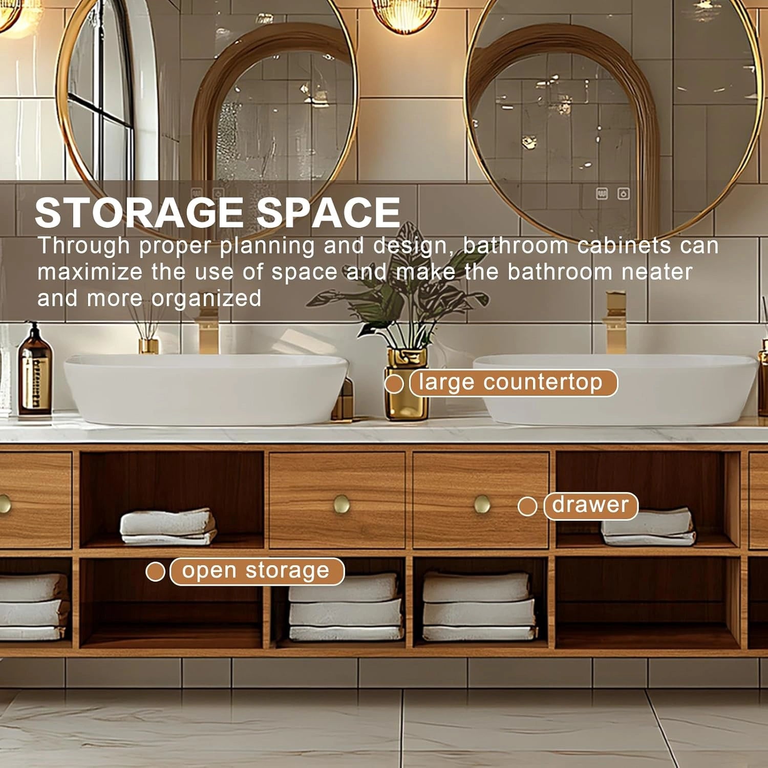Open Storage Rack: It breaks the limitations of traditional closed cabinets, keeping daily items clearly visible and easy to access. It brings a relaxed and comfortable feeling to your daily bathroom experience.