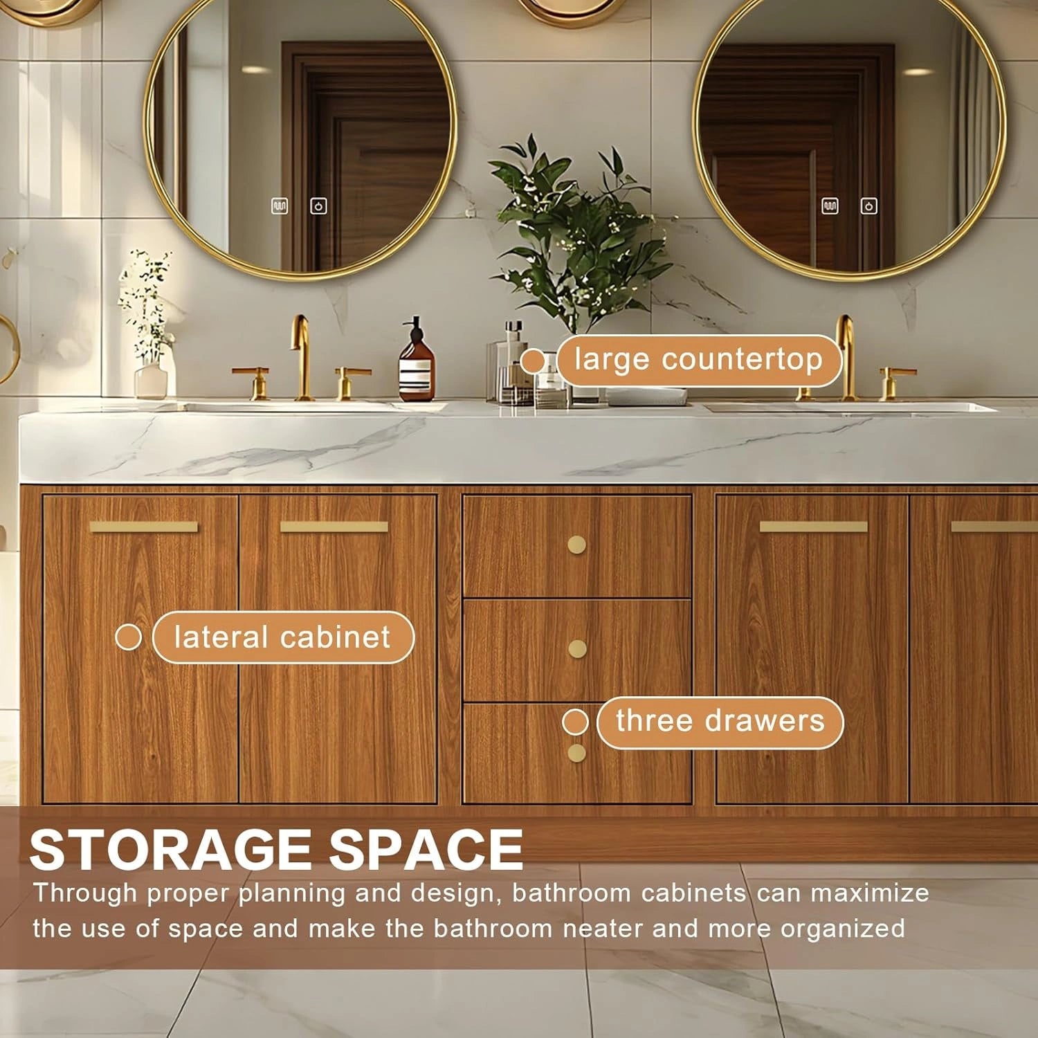 Double Sinks: The spacious design lets you and your family or friends use it at the same time for added convenience. It is highly functional and practical, making your morning grooming routine relaxed and efficient.
