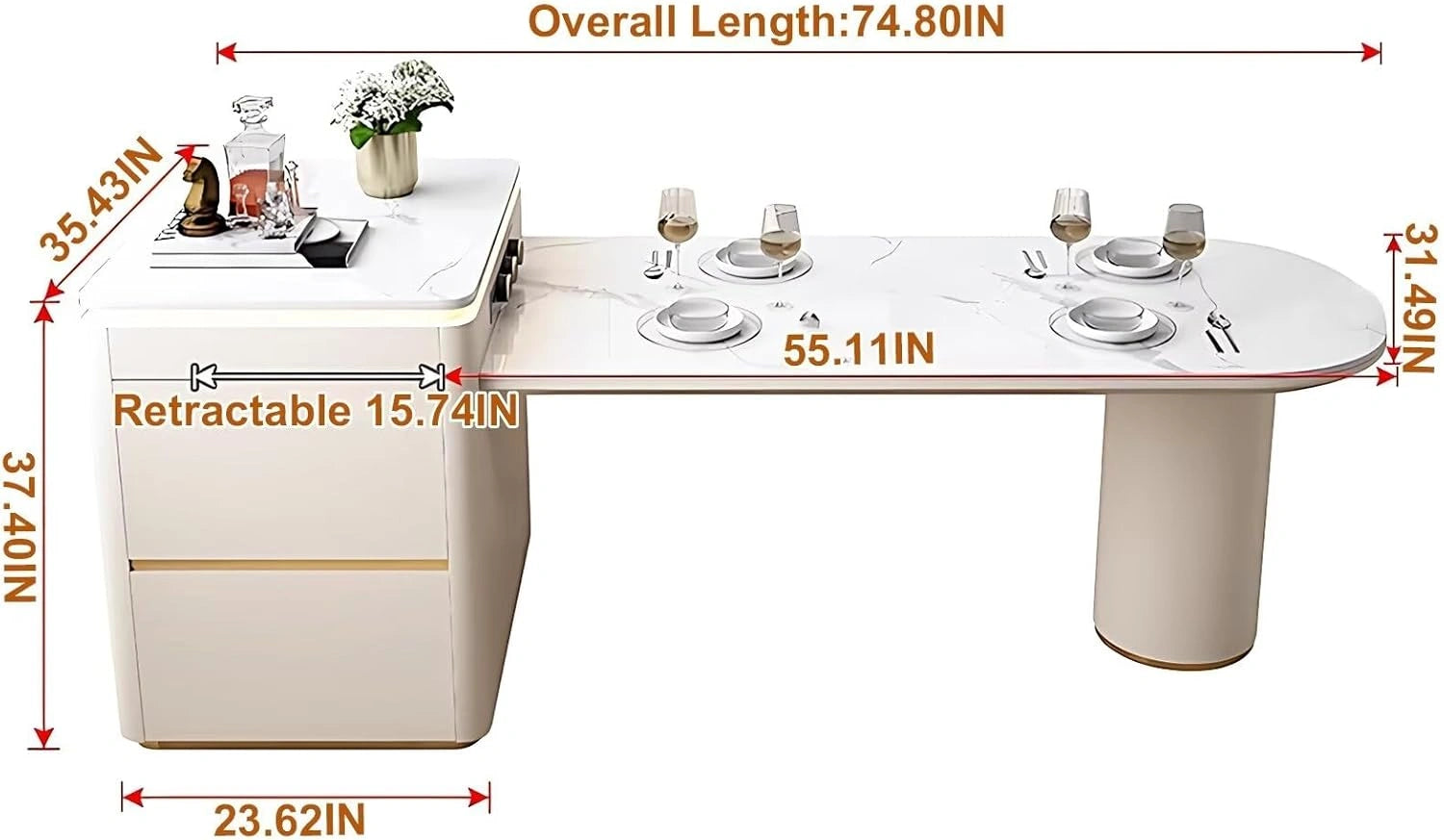Extendable Integrated Island & Dining Table: Seamlessly combining the island and table in one piece, the table size can be adjusted to your needs—an ideal space-saver for daily use. It extends effortlessly to comfortably accommodate more diners for larger meals.