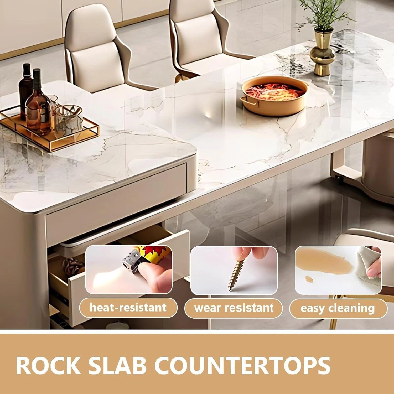 Sturdy and Long-lasting Material: The tabletop and island countertop are made of high‑hardness, deformation‑resistant slate, ensuring strength and durability. The cabinet is constructed from solid, long‑lasting wood.
