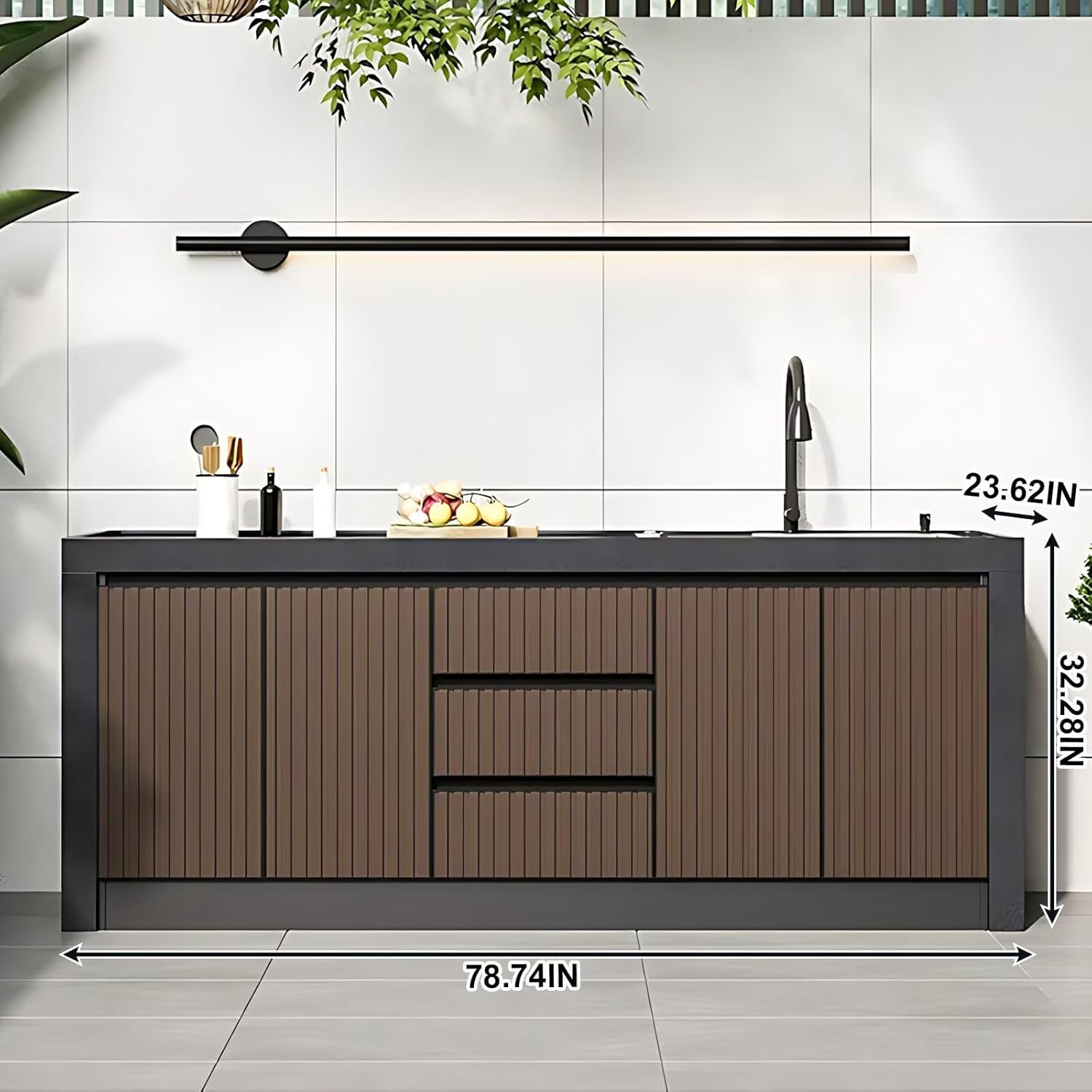 Modern Minimalist Style: the brown striped cabinets are modern and elegant; the lines of the cabinet doors are beautiful and unique,with smooth and simple lines, which enhances the style of the overall outdoor space