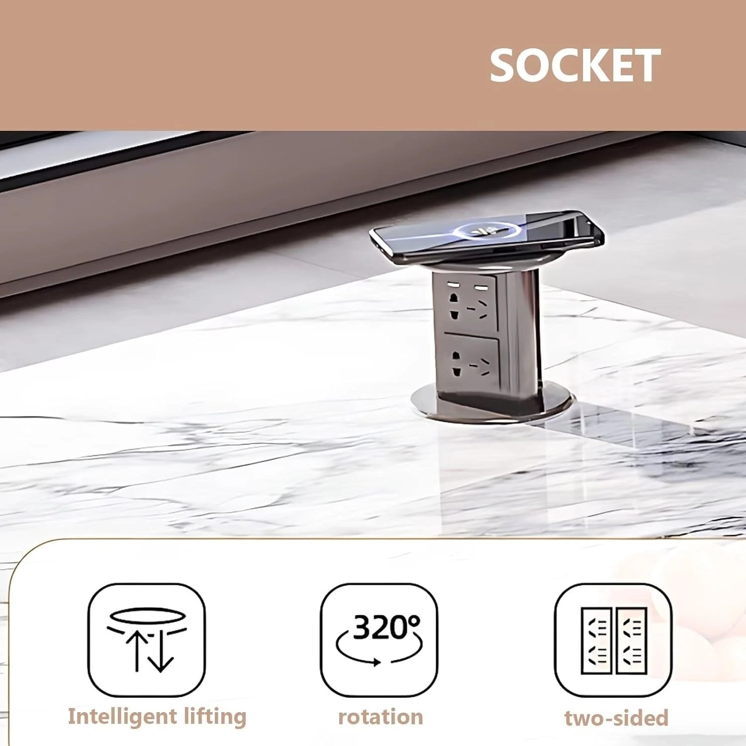 Pop-Up Power Socket: Equipped with a convenient pop-up socket, it can be neatly concealed inside the cabinet when not in use—extending its service life significantly. It provides easy access to power for small kitchen appliances, eliminating the need for messy power strips and adding a new level of convenience to daily life.