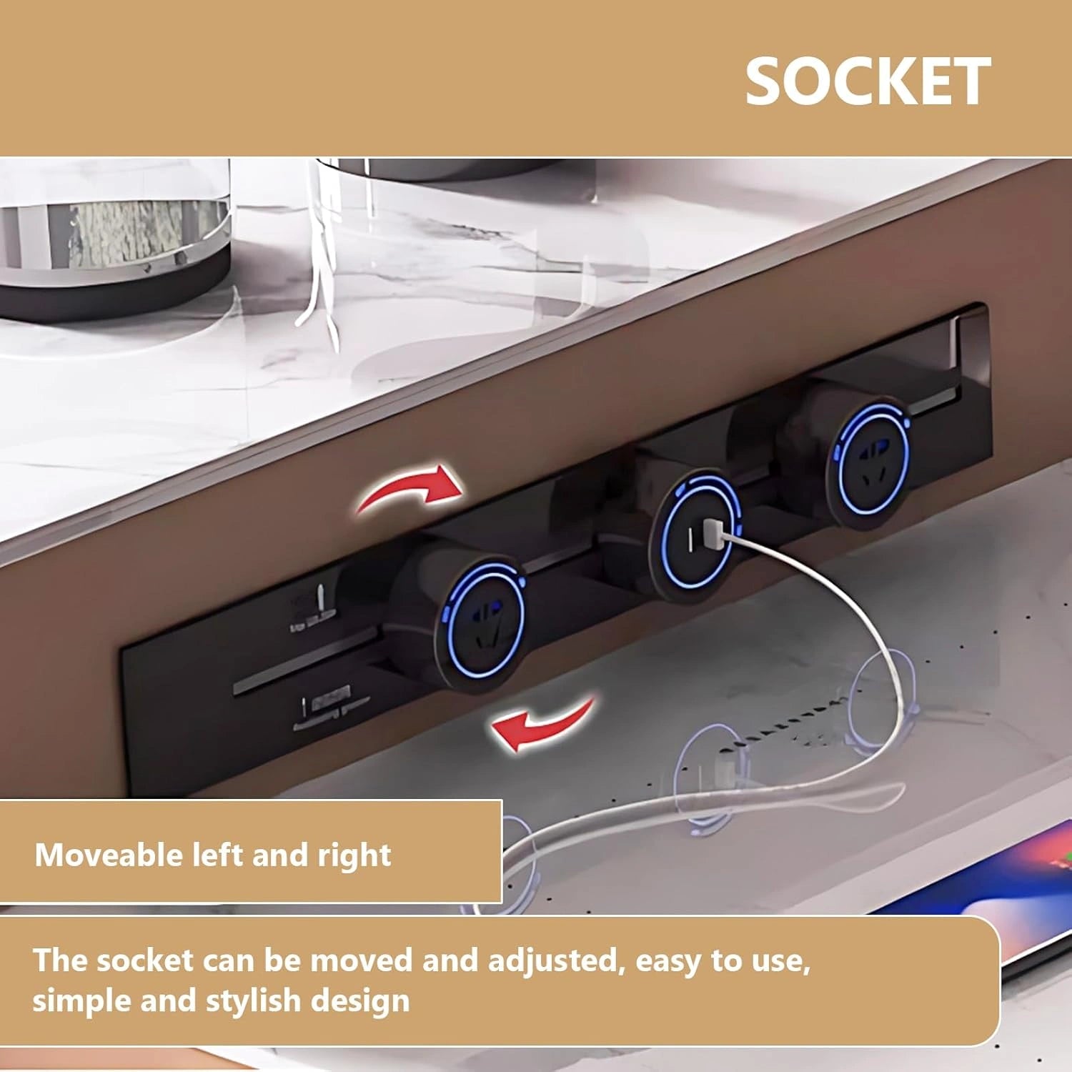 Sliding Rail Socket: It frees you from the limitations of traditional fixed sockets. The socket can be moved flexibly along the sliding rail, making it much more convenient to use electrical appliances.