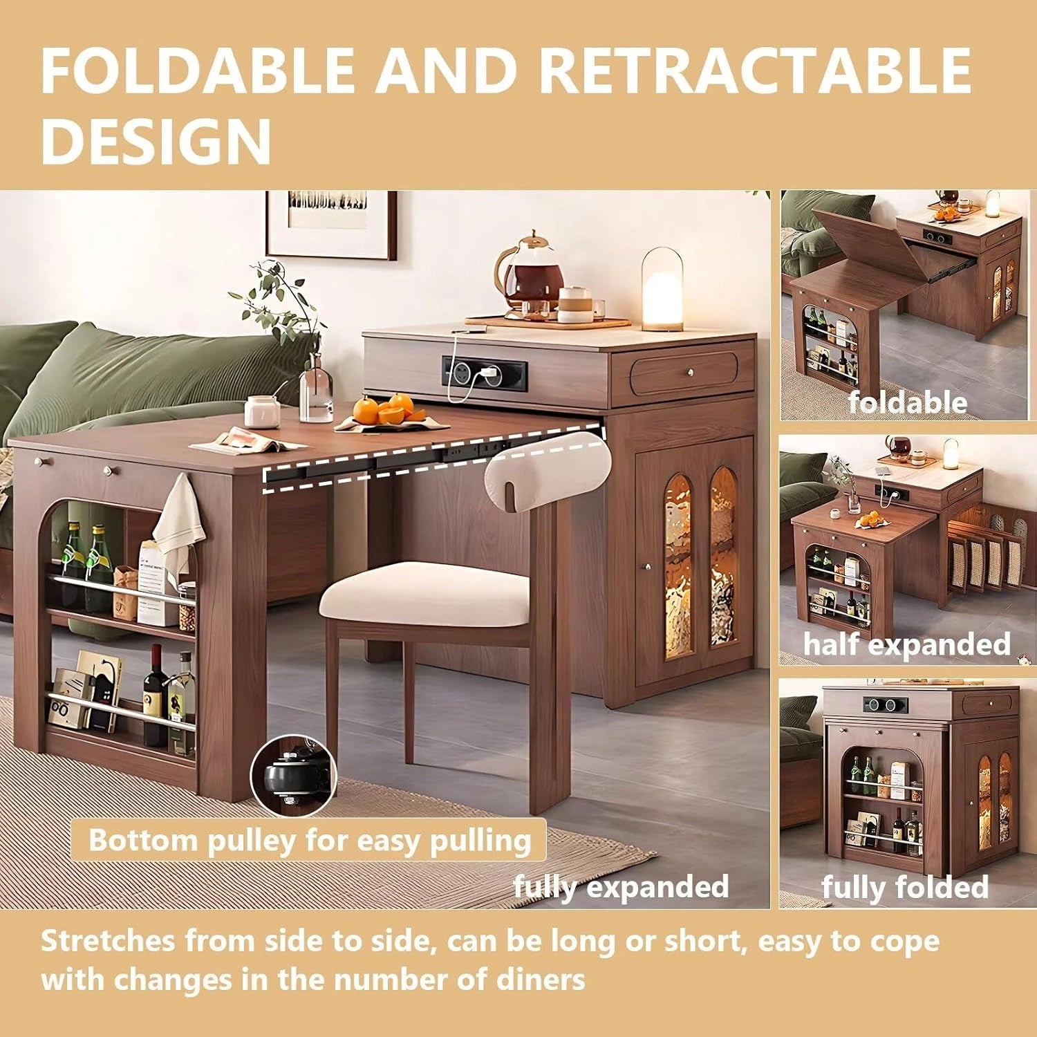Folding Extendable Dining Table: This dining table boasts a foldable and extendable design, with the size adjustable to your preference. It effortlessly converts into a dining table for multiple people or a compact workbench for single use.