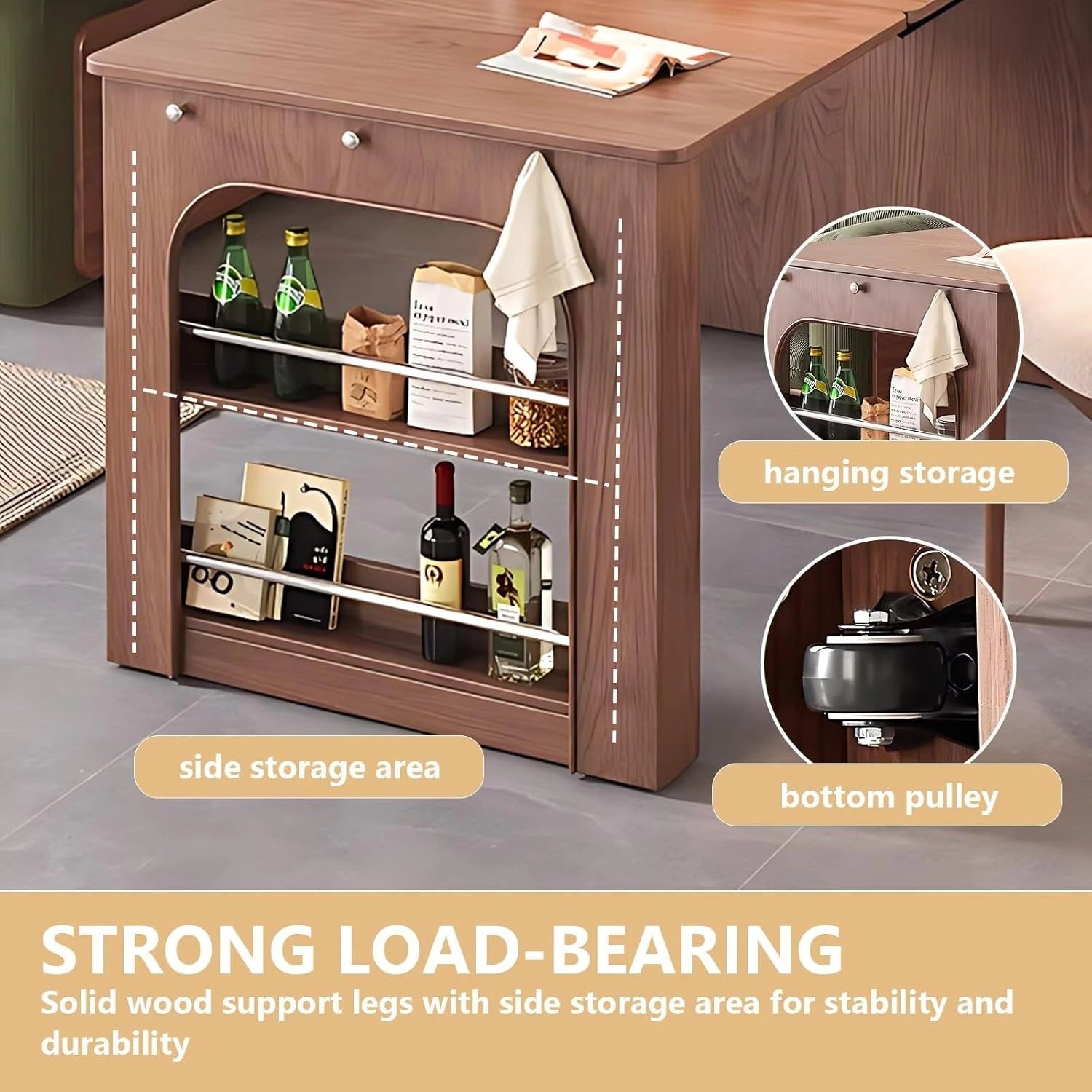 Retro Luxury Style: The island and tabletop feature a seamless integrated design, finished in a rich brown retro tone with exquisite wood grain. The tabletop can be freely folded, extended and repositioned to suit your personal needs.