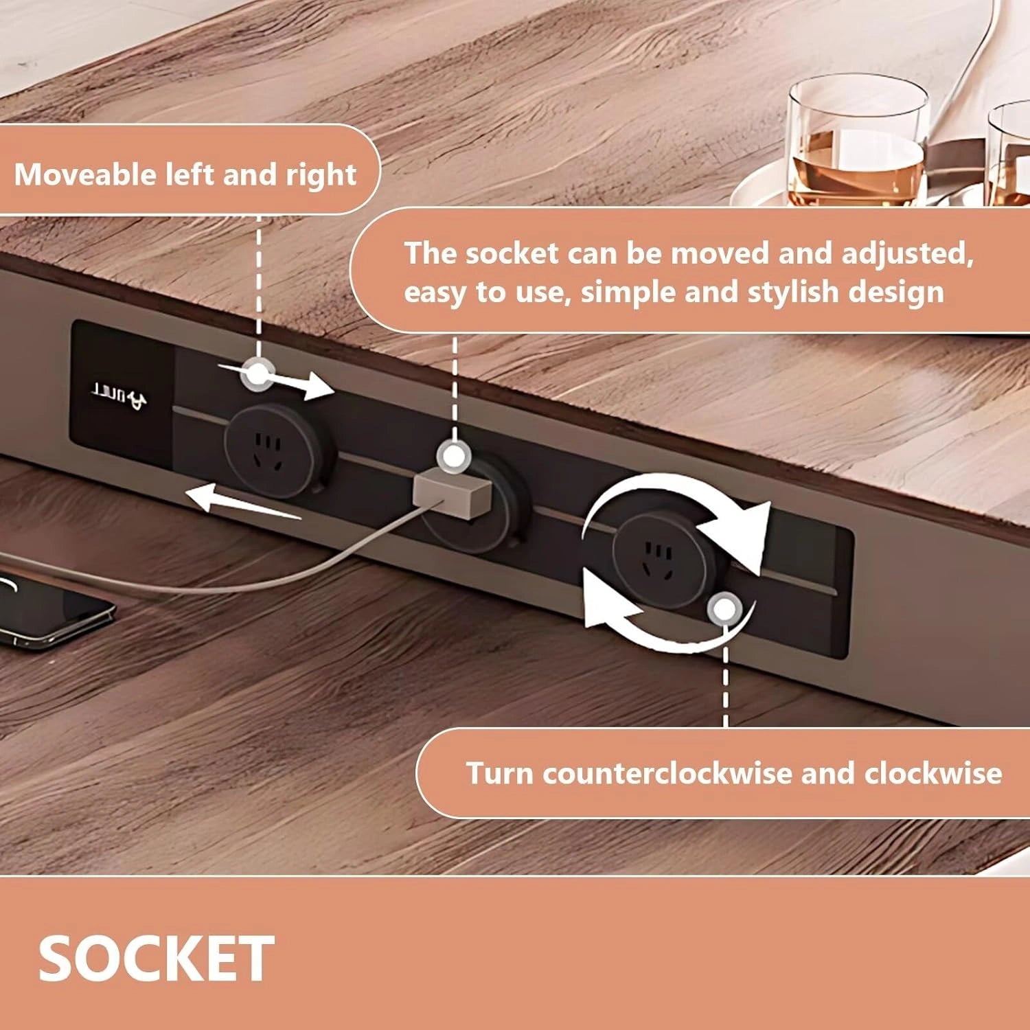 Sliding Rail Socket: It breaks the limitation of the traditional fixed position of the socket, and the position of the socket can be flexibly adjusted through the slide rail, which is convenient for using electrical appliances