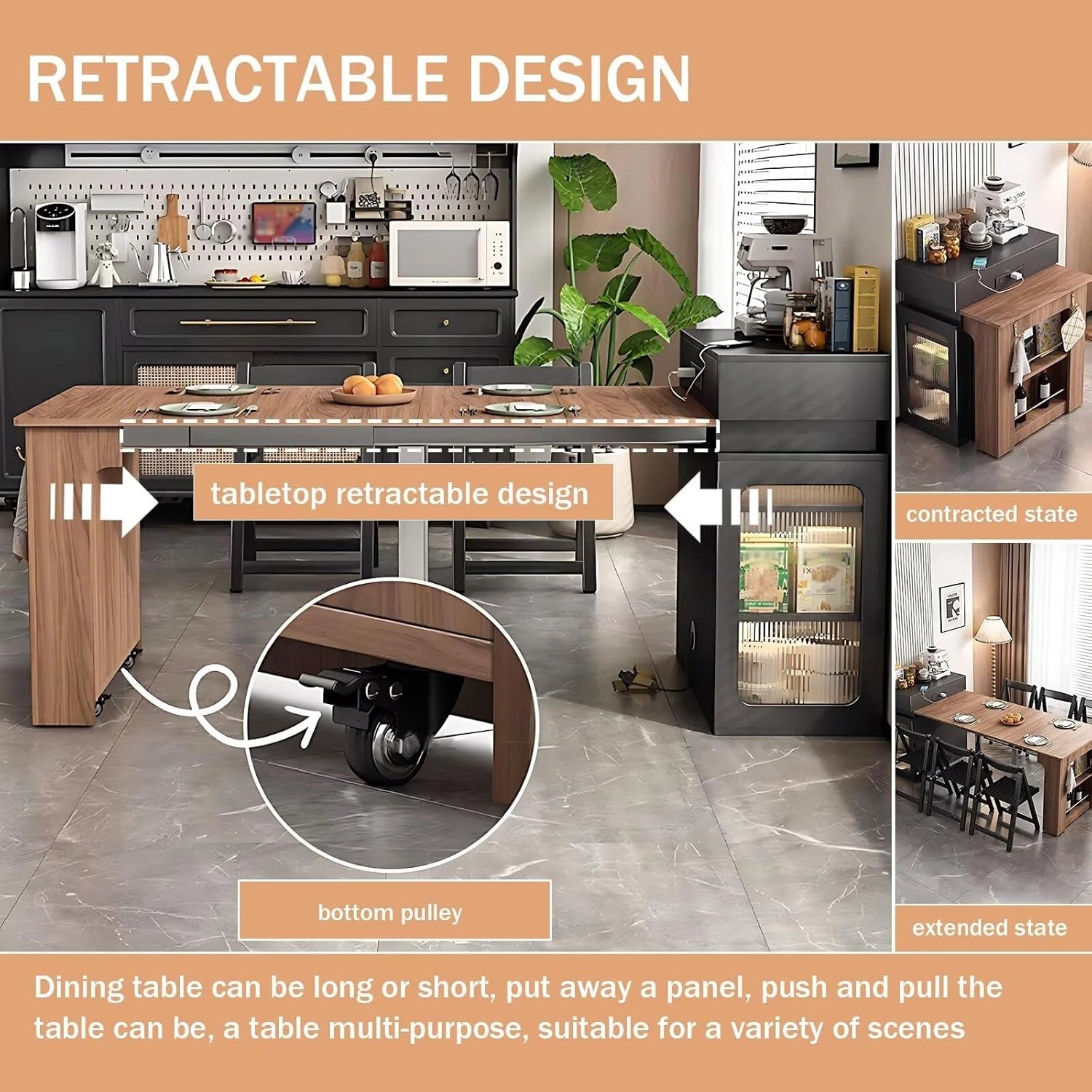 Extendable Island Dining Table: This all-in-one island dining table is easy to assemble, with a length that can be extended to accommodate the number of diners. Effortlessly adjustable, it's perfect for everyday meals and dinner parties alike.
