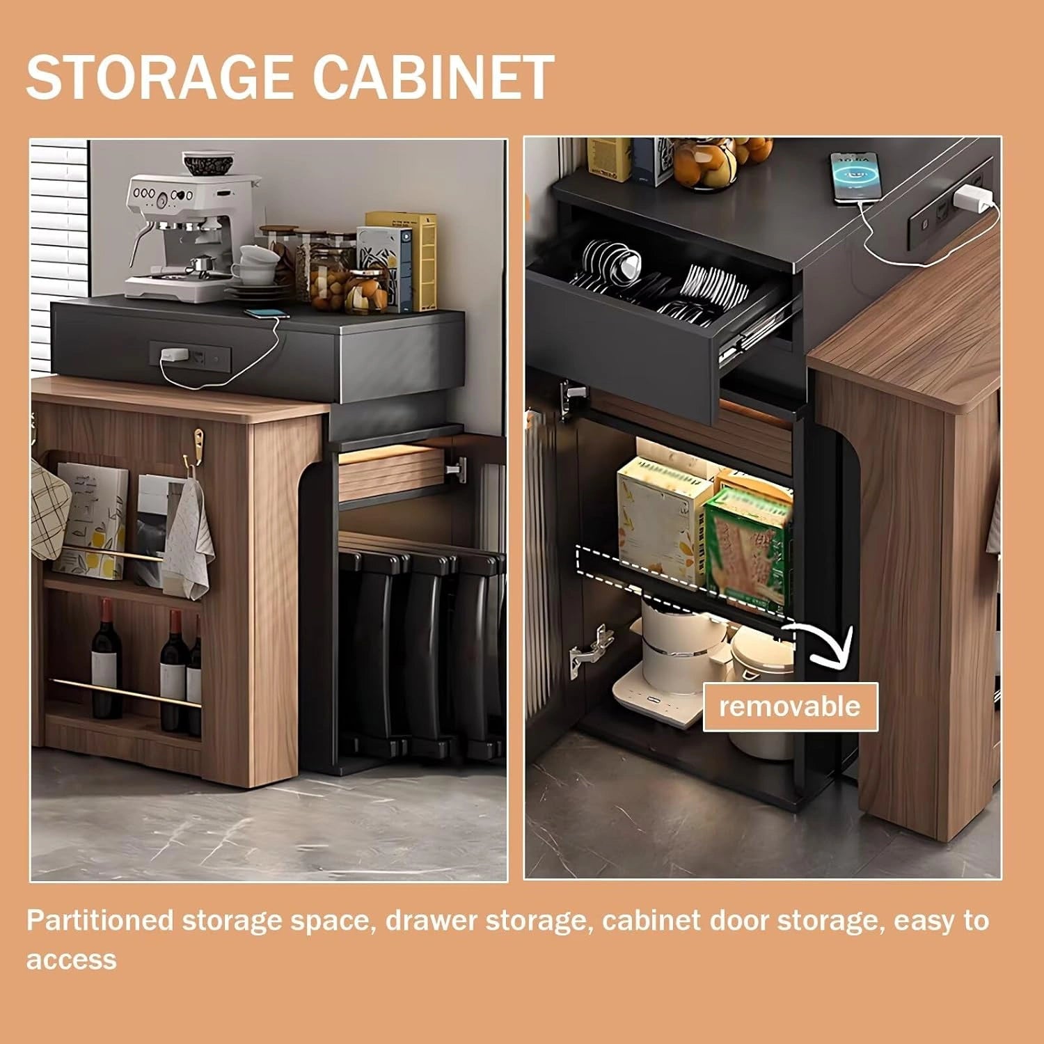 Modern Rustic Industrial Style: Blending the bar and island into a single unit, this design features a striking black-and-brown color scheme that exudes bold, rustic charm. Crafted with natural solid wood boasting exquisite grain, it seamlessly complements all interior decor styles.